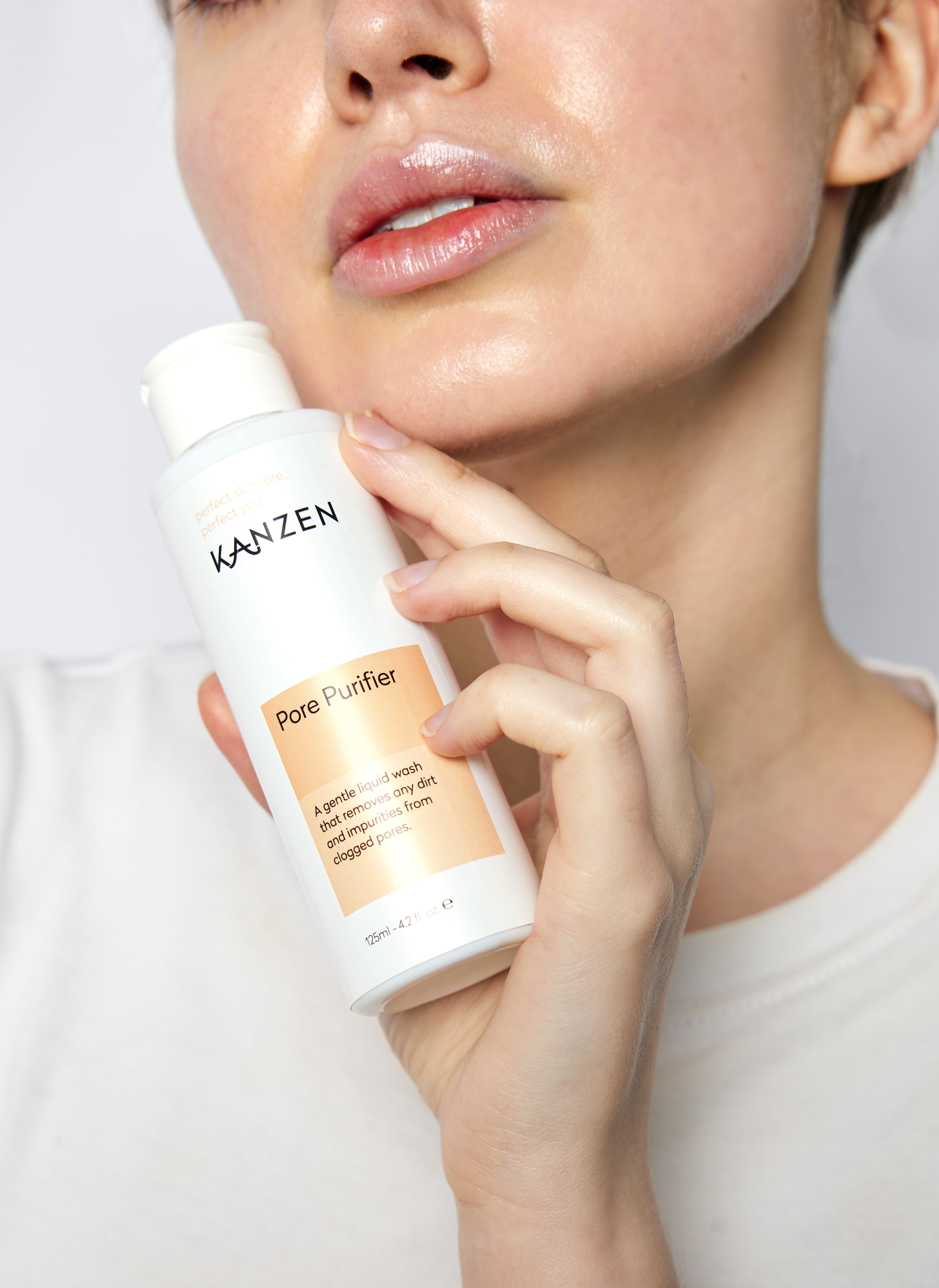 De Kanzen Pore Purifier is een zachte maar krachtige vloeibare reiniger die diep in de poriën doordringt om onzuiverheden en overtollige oliën te verwijderen. Dankzij de unieke hypochlorous acid-formule elimineert het effectief 99,9% van alle bekende bacteriën zonder de essentiële vochtbalans van de huid aan te tasten.