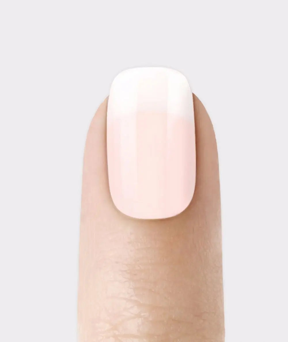 - Druk de kunstnagel eerst in het midden goed aan op de eigen nagel. Druk vervolgens tegelijkertijd beide zijkanten van de nagel aan