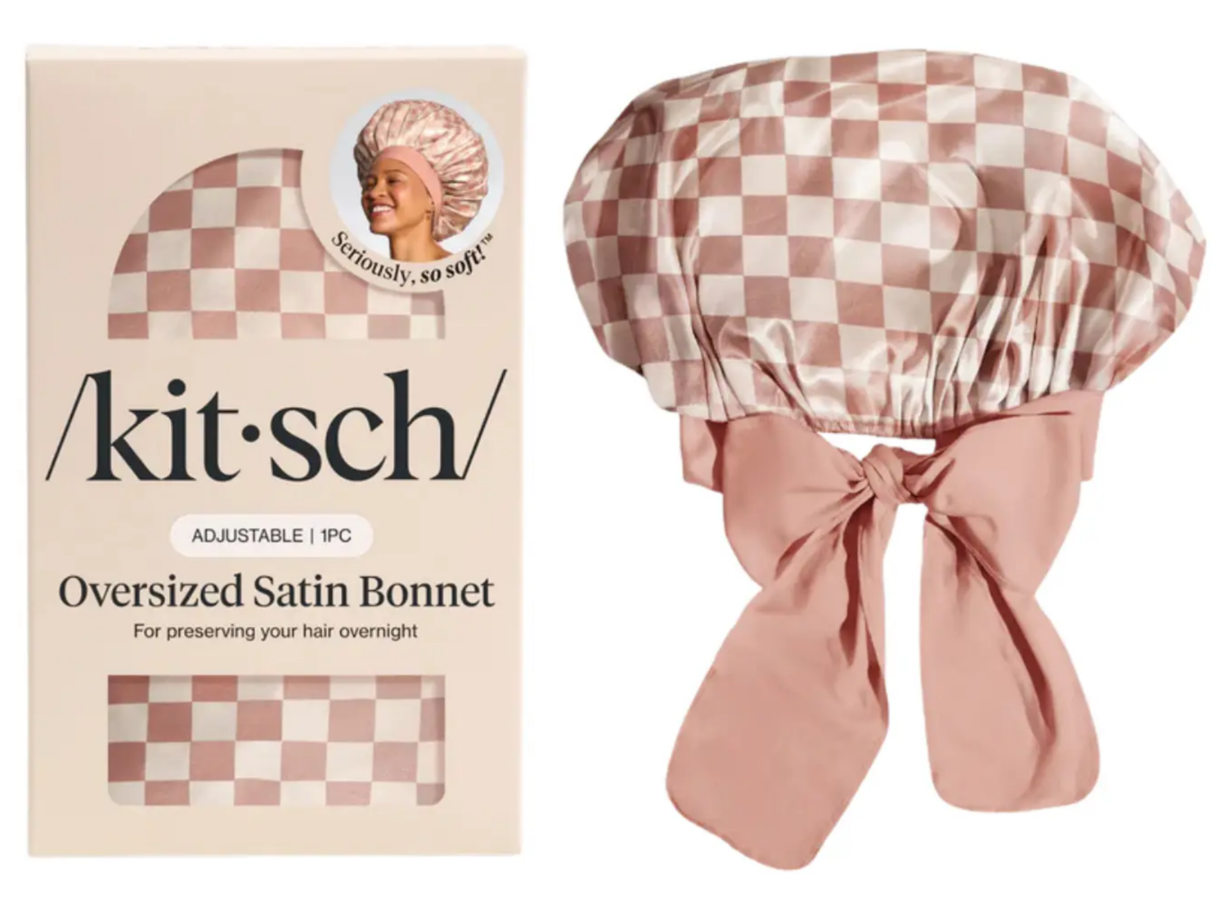 De Kitsch Adjustable Oversized Satin Bonnet Terracotta Checker is de ultieme beauty sleep essential die je haar écht verdient! Deze stijlvolle, oversized bonnet is gemaakt van dubbelgelaagde satijn van topkwaliteit en beschermt je lokken terwijl jij lekker ligt te slapen. Of je nu je Kitsch Heatless Curlers draagt of volle 4C krullen hebt: deze bonnet houdt je kapsel perfect in vorm.