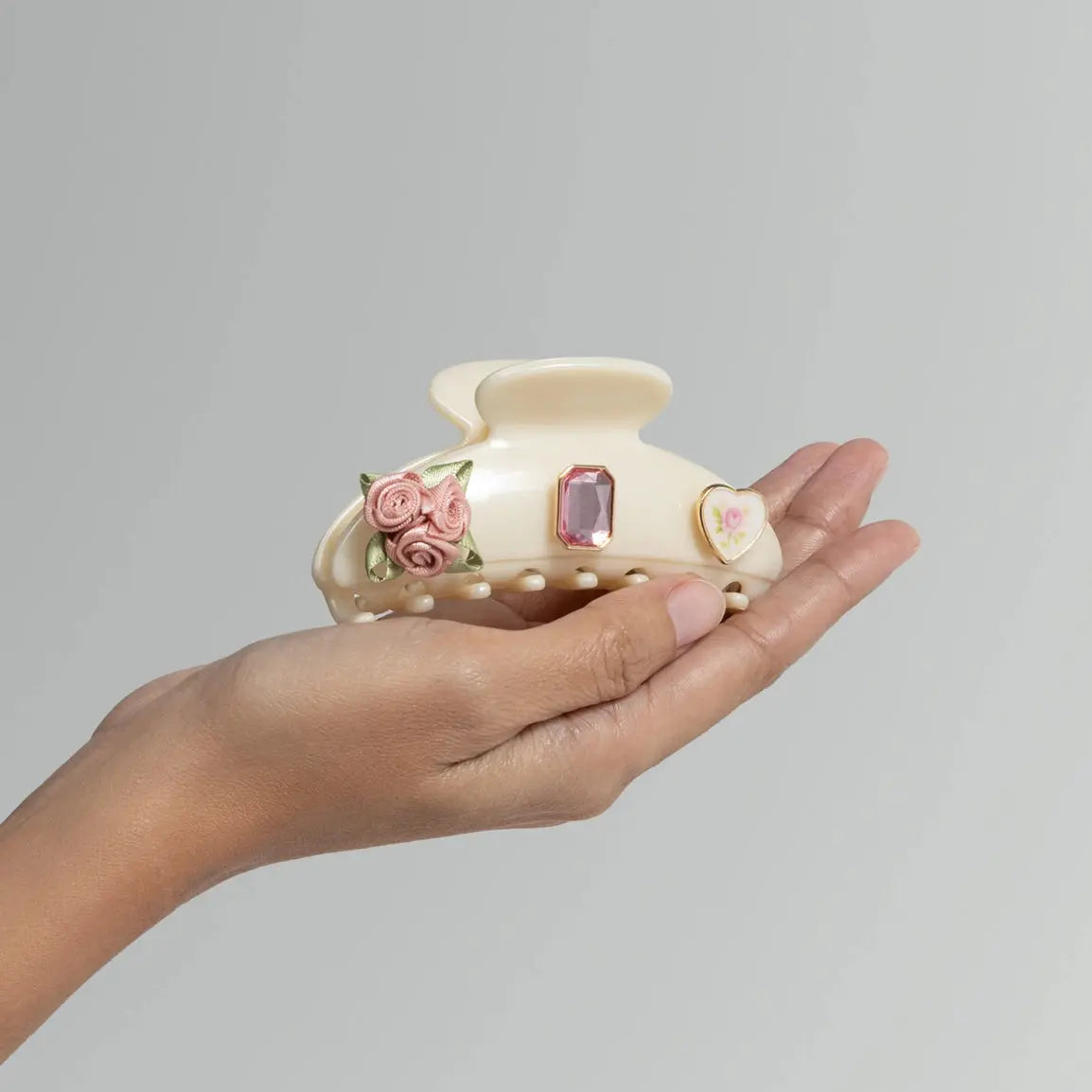 De Kitsch KitschPop Charms & Curved Claw Clip Set in Pearlized Cream is de perfecte mix van speels en chic. Of je nu een snelle half-up look wilt maken of je hele haar stijlvol naar achteren wilt klemmen: met deze elegante haarklem geef je elke look moeiteloos een upgrade.