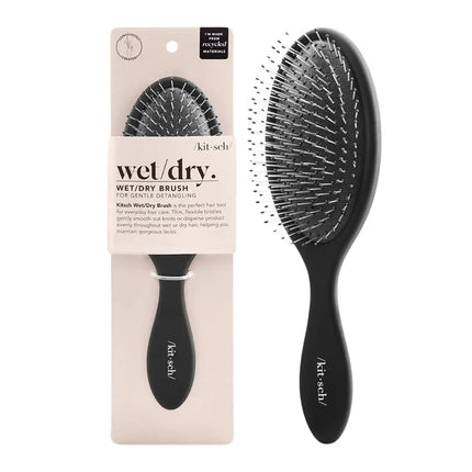 De Kitsch Recycled Plastic Wet/Dry Brush Black is dé ultieme borstel voor moeiteloos ontwarren en dagelijks haarverzorging. Dankzij de dunne, flexibele borstelharen glijdt deze borstel zachtjes door je haar zonder te trekken of breken, waardoor hij perfect is voor zowel nat als droog haar. Gemaakt van gerecycled plastic, kies je voor een duurzame én haarvriendelijke oplossing.