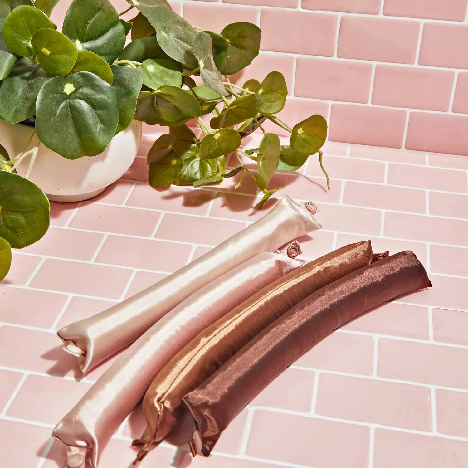 Met de Kitsch Satin Wrapped Jumbo Flexi Rods Rosewood maak jij super makkelijk en zonder hitte speelse, dimensionale krullen. Deze set bestaat uit meerdere grote rollers waardoor jij verschillende krullen kunt maken. Je bepaalt zelf welke kant je iedere krul op laat gaan.