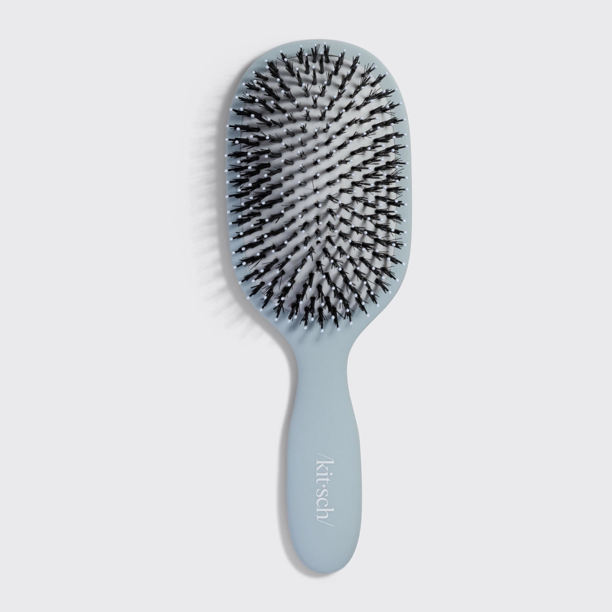 De Kitsch Smooth & Polish Brush Haze Blue is jouw geheime wapen voor glad, glanzend en gezond haar. Met een slimme mix van zachte vegan borstelharen en flexibele nylon pinnen, ontwart deze brush je haar zónder moeite, terwijl hij tegelijk pluis temt en je natuurlijke glans naar boven haalt.