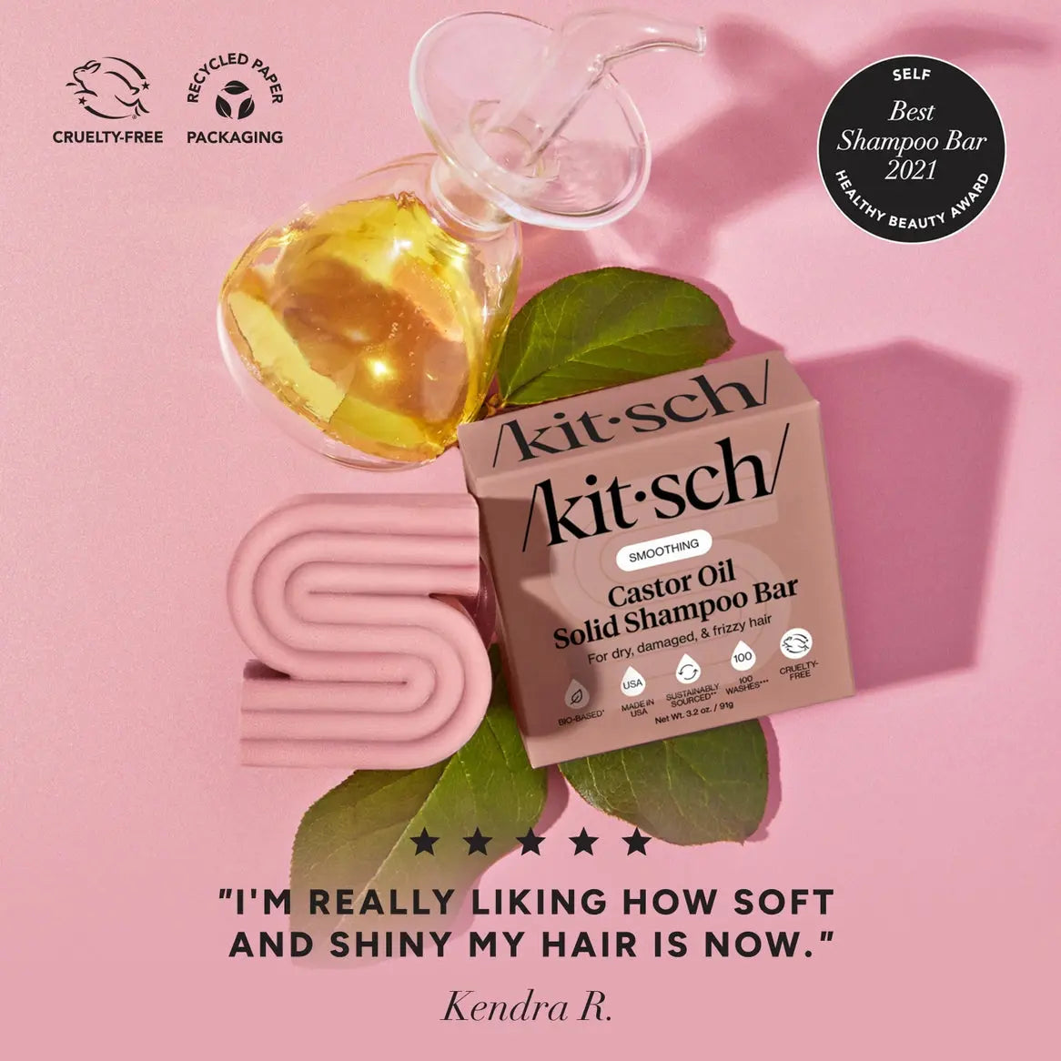 De Kitsch Smoothing Castor Oil Nourishing Shampoo & Conditioner Bar Set is jouw nieuwe haarverzorgingsroutine in vaste vorm: vol voedende kracht en zero waste. Deze bars zijn verrijkt met castorolie, bekend om het ondersteunen van sterk, gezond haar, en zitten boordevol actieve ingrediënten zoals Fision® EcoSil en Fision® Hydratress voor glans, hydratatie en controle over pluis.