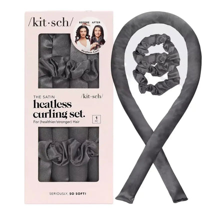 De Kitsch The Satin Heatless Curling Set Charcoal is de ideale oplossing om krullen te creëren zonder je haar te beschadigen! De ribbon en de scrunchies in de set zijn van satijn gemaakt, super goed en zacht voor je haar dus.