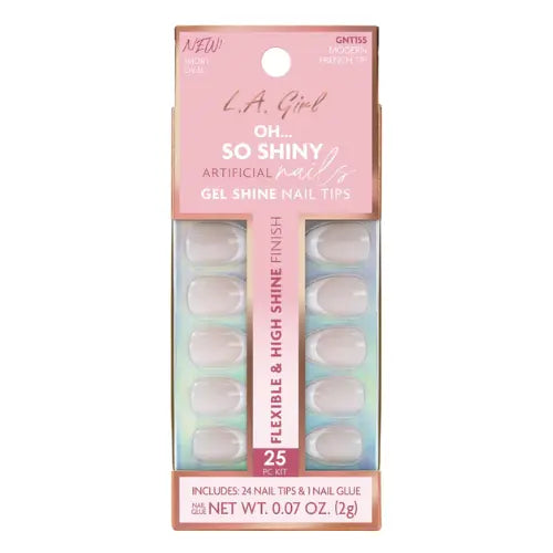 LA Girl Oh So Shiny Nail Tips Modern French zijn de ideale nageltips om je nagels een glamoureuze make-over te geven. Deze nageltips zijn extra flexibel en comfortabel tijdens het dragen. In dit setje zitten wel liefst 24 hoogglanzende nageltips in korte vierkante of korte ovale vormen en nagellijm. Experimenteren maar!