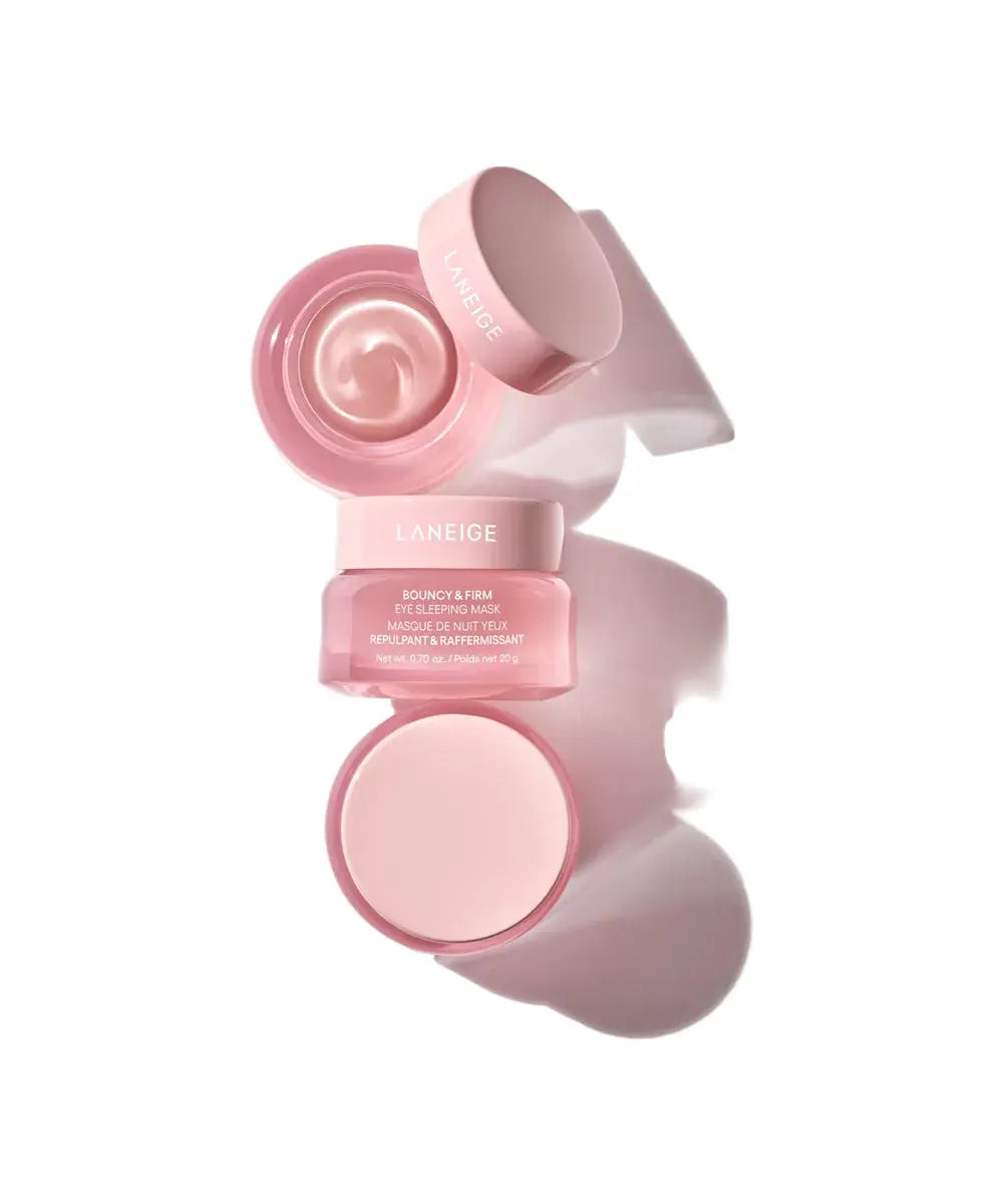 Het Laneige Bouncy & Firm Eye Sleeping Mask is jouw geheime wapen voor een frisse, uitgeruste oogopslag bij het wakker worden. Dit nachtmasker speciaal voor de gevoelige huid rondom je ogen zit bomvol hydraterende en verstevigende ingrediënten zoals het Peony & Collagen Complex™, peptiden, niacinamide en cafeïne. Terwijl jij slaapt, werkt deze waterige gel-formule intensief om droogtelijntjes te verzachten, de huid te verstevigen en wallen en donkere kringen aan te pakken.