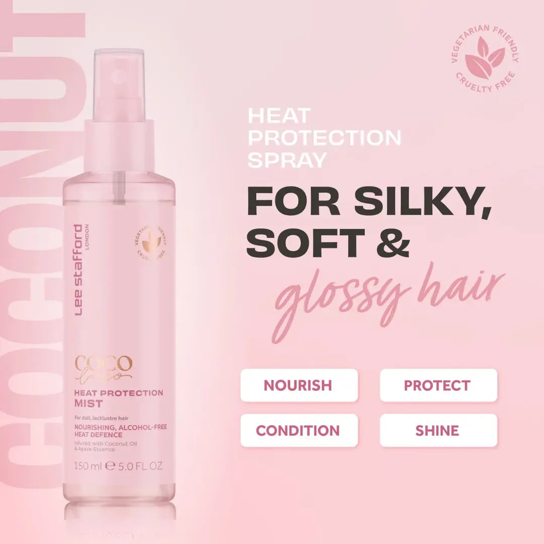 De Lee Stafford CoCo LoCo & Agave Heat Protection Mist is een hydraterende en lichtgewichte spray die jouw haren beschermt tijdens het stijlen of krullen! Door de toegevoegde kokosolie wordt jouw haar ook nog eens heerlijk zacht, glanzend en gehydrateerd, waardoor je haren weer stralen als nooit te voren!