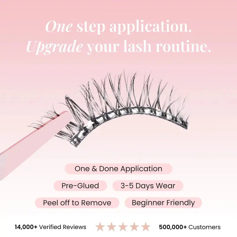 Met de innovatieve Ela-stick™ technologie blijven deze lashes tot wel 3 dagen zitten. Yup, zelfs als je een regenbui of windvlaag trotseert. Geen lijm, geen geknoei, gewoon *klik* en klaar. Bonus: ze zijn 100% vegan en cruelty free, dus goed voor jou én de planeet.