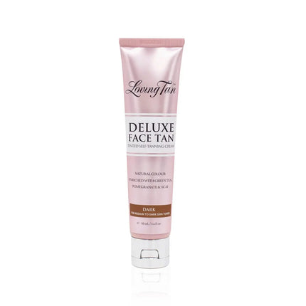 Loving Tan Deluxe Face Tan is een zelfbruiner speciaal ontwikkeld voor je gezicht en decolleté. De zelfbruiner heeft een hele fijne formule waardoor jouw huid niet alleen een prachtig en egaal tintje krijgt, maar ook nog intens wordt verzorgd. De formule bevat Aloë Vera, groene thee, granaatappel en acai-extracten zodat de huid gaat stralen en een natuurlijke teint krijgt.