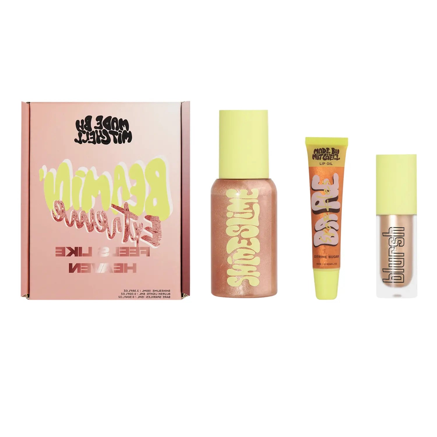 De Made By Mitchell Beamin Extreme Feels Like Heaven Bundle is alles wat je nodig hebt om jezelf van top tot teen in glow te hullen. Deze dreamy trio zit bomvol glans, sparkles en shine en geloof ons: hiermee steel je gegarandeerd de show. Of je nu een subtiele sparkle wilt of full-on glitter goals nastreeft, deze set laat je stralen op jouw manier. De beauty bundle is verkrijgbaar in meerdere kleuren: zo kan je perfect kiezen wat bij jou past!