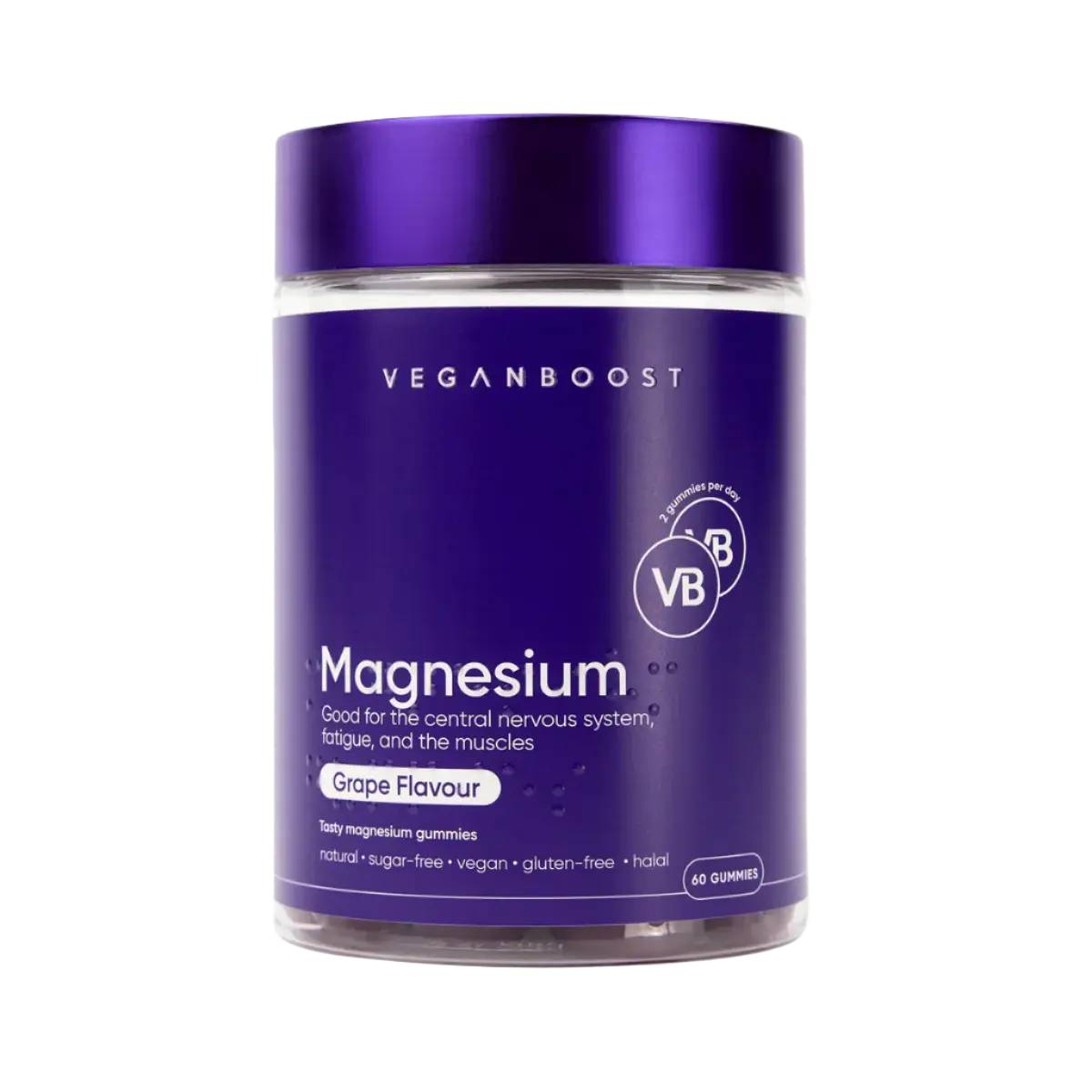 De Veganboost Magnesium Gummies zijn jouw nieuwe favoriete manier om je magnesium op peil te houden – én dat met een juicy druivensmaak! Deze gummies bevatten magnesiumcitraat, een goed opneembare vorm van magnesium die helpt bij vermoeidheid, je spieren ondersteunt en je focus scherp houdt. Geen pillen of poeders nodig – gewoon twee gummies per dag en gaan!
