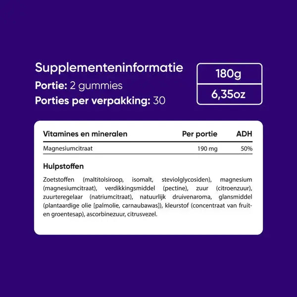 Magnesium speelt een belangrijke rol in het functioneren van je zenuwstelsel én helpt bij je mentale prestaties. Deze gummies zijn volledig vegan, bevatten natuurlijke smaakstoffen en zijn perfect voor iedereen die zijn dagelijkse routine wil boosten met een beetje extra zorg voor lichaam en geest.
