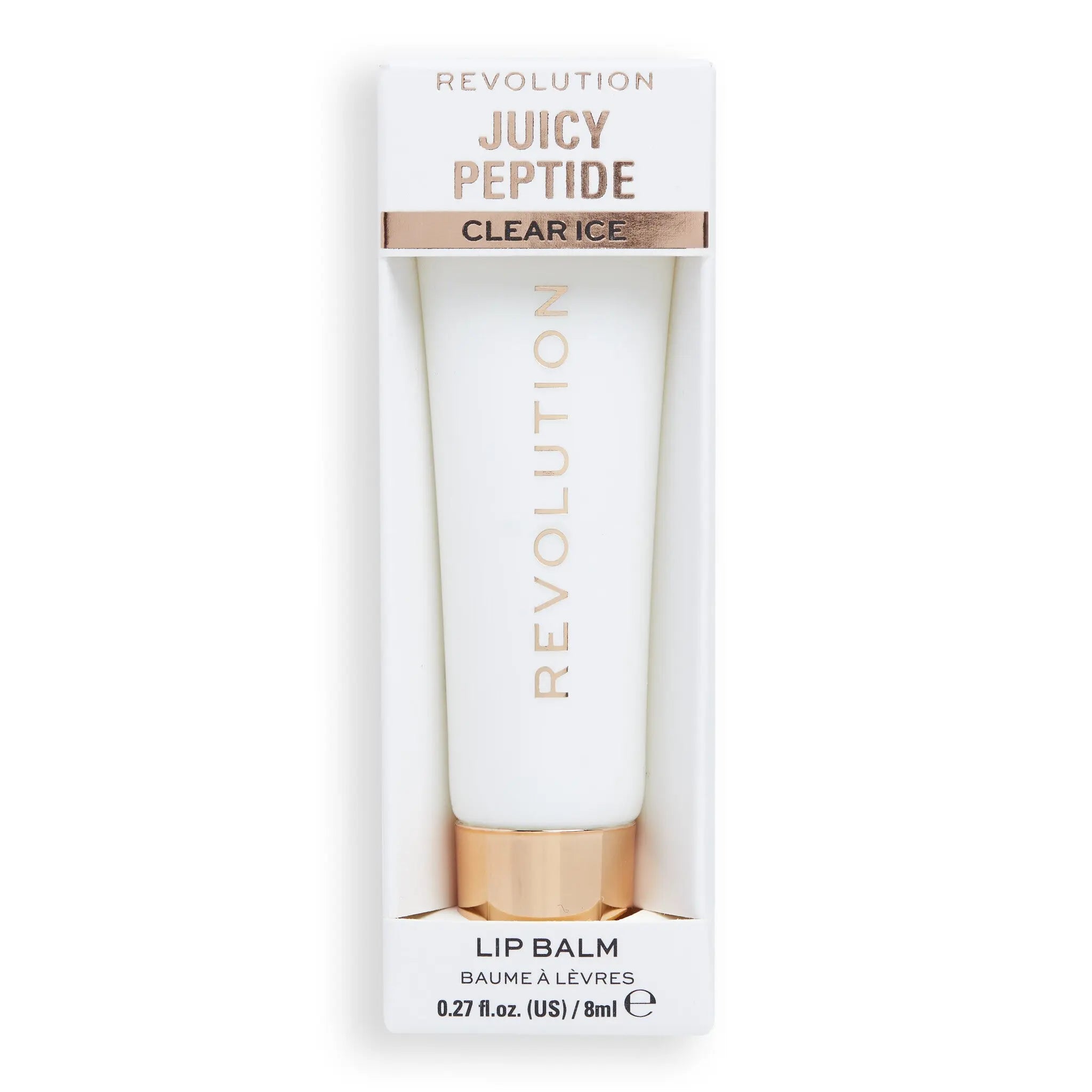 De Revolution Juicy Peptide Lip Balm Clear Ice is de perfecte combinatie van lipverzorging en kleur. Deze boterachtige balsem is doordrenkt met peptiden, squalaan en lip-liefhebbende oliën zoals avocado-olie, kersenpitolie en kamille-extract. Het hydrateert, verzorgt en herstelt je lippen terwijl je het draagt.