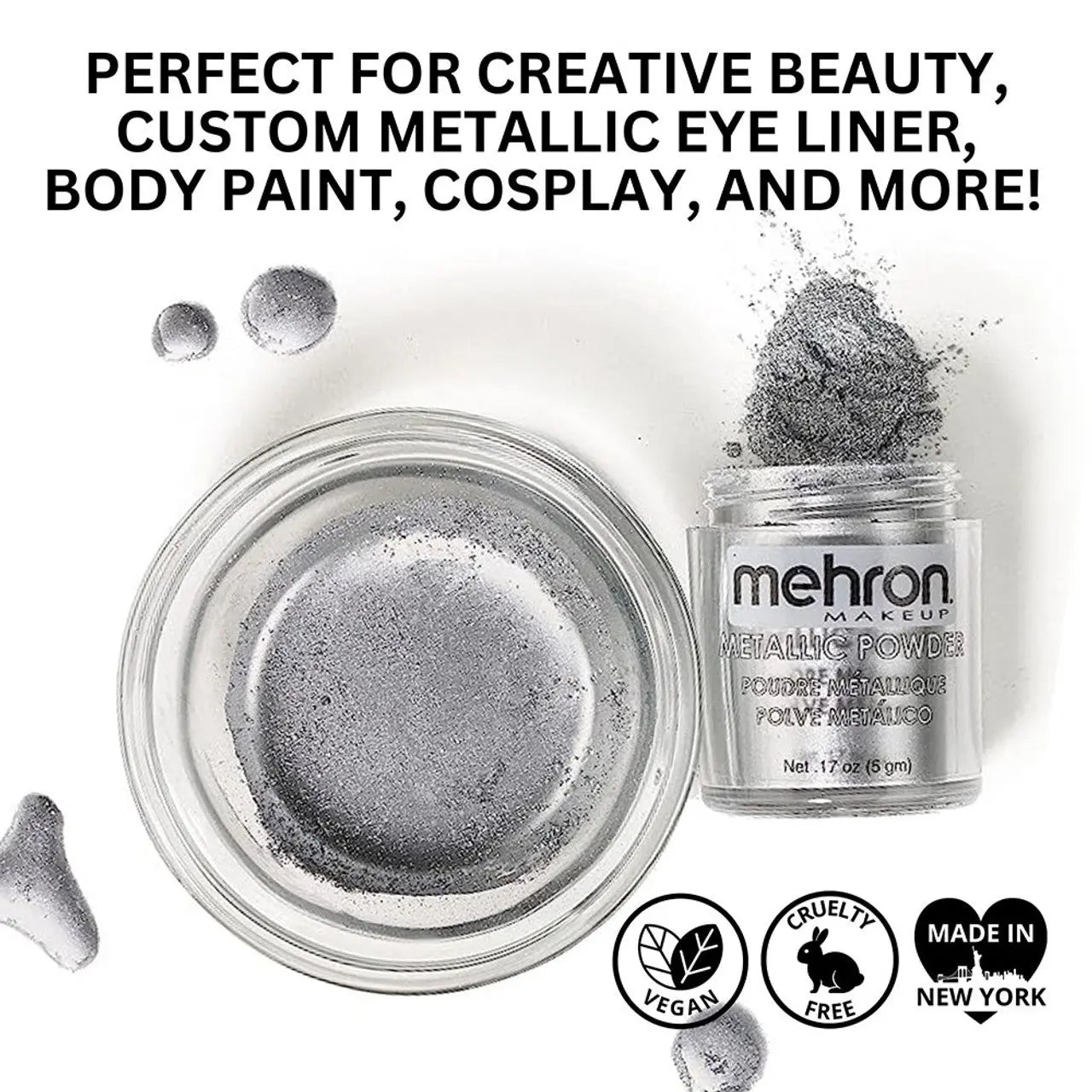 De Mehron Makeup Metallic Powder Silver met Mixing Liquid is jouw geheime wapen voor next-level metallic makeup. Deze iconische combinatie zorgt voor een intense, high-shine zilveren finish waarmee je moeiteloos body art, metallic eyeliner of andere creatieve looks creëert.