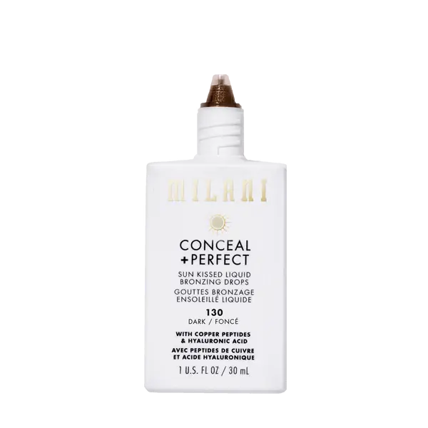De Milani Conceal + Perfect Sun Kissed Liquid Bronzing Drops 130 Dark geven je die perfecte sun-kissed glow zónder dat je ook maar één zonnestraal hebt gezien. Deze vloeibare bronzing drops geven een sheer, gewichtloze dekking. Het blendt moeiteloos met je huid of make-up voor een frisse, stralende look alsof je net terug bent van vakantie.