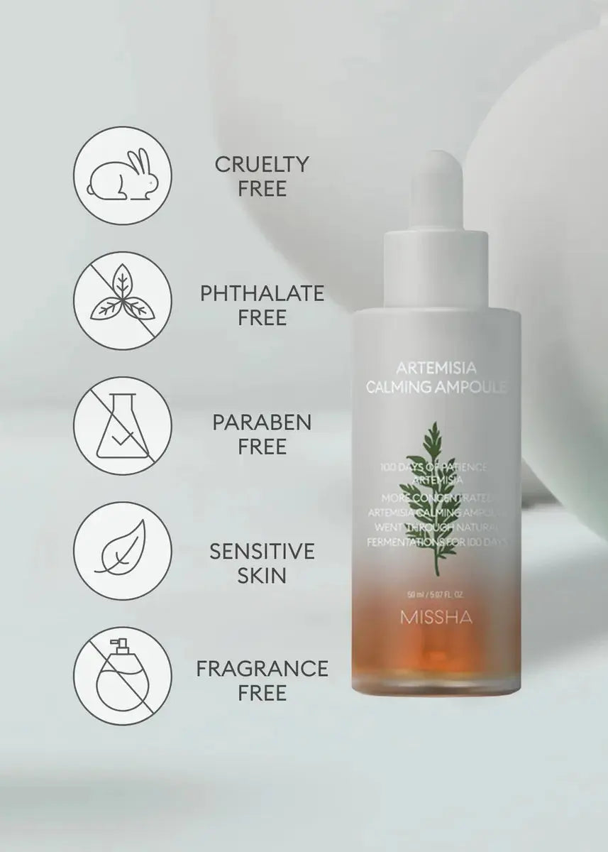 De Missha Artemisia Calming Ampoule is een must-have voor iedereen met een gevoelige, snel geïrriteerde of uit balans geraakte huid. Deze Koreaanse bestseller bevat een krachtige dosis dubbel gefermenteerd Artemisia Annua-extract (ook wel bijvoet of alsem genoemd), zorgvuldig geteeld op het eiland Ganghwa: bekend om zijn zuivere natuur en rijke grond.