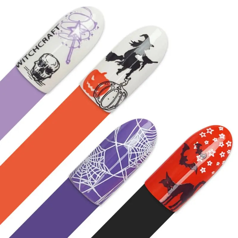 - bevat Halloween-geïnspireerde designs zoals heksen, pompoenen, geesten en meer