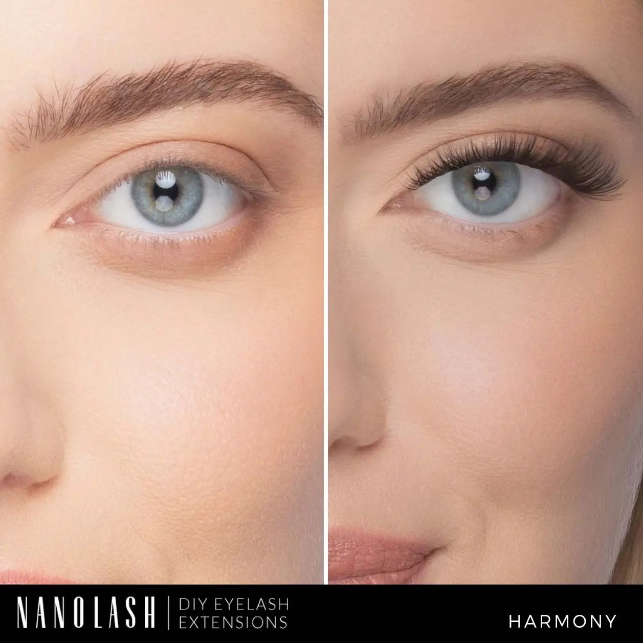 De Nanolash DIY Eyelash Extensions Harmony zijn jouw shortcut naar salonwaardige wimpers: gewoon vanuit huis, in slechts 10 minuten! Deze prachtige clusterwimpers zijn perfect voor iedereen die houdt van een zachte, natuurlijke look met nét dat beetje extra flair. In elk doosje zitten 36 lichtgewicht clusters in verschillende lengtes, zodat je zelf kunt kiezen of je gaat voor een subtiele everyday lash of een iets dramatischere finish. Jij bepaalt de vibe!