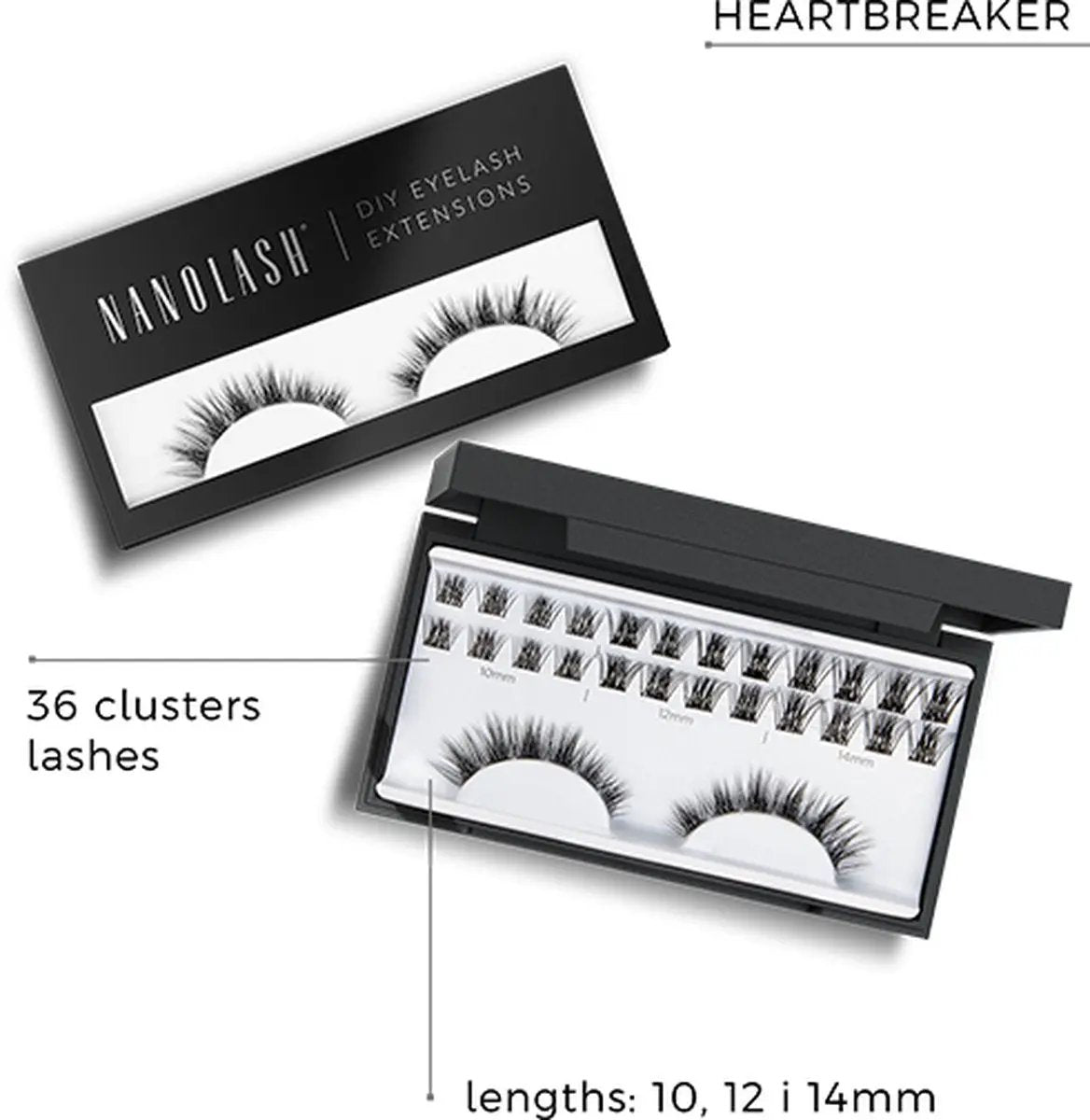 De Nanolash DIY Eyelash Extensions Heartbreaker is allesbehalve basic. Deze showstopper geeft je dat shiny, ‘wet lash effect’ dat direct opvalt: perfect voor iedereen die houdt van een verleidelijke, opvallende oogopslag. Dankzij de mix van 10, 12 en 14 mm clusters creëren de wimpers moeiteloos volume, glans en diepte, zonder dat je nog eyeliner nodig hebt (tenzij je extra drama wil natuurlijk).