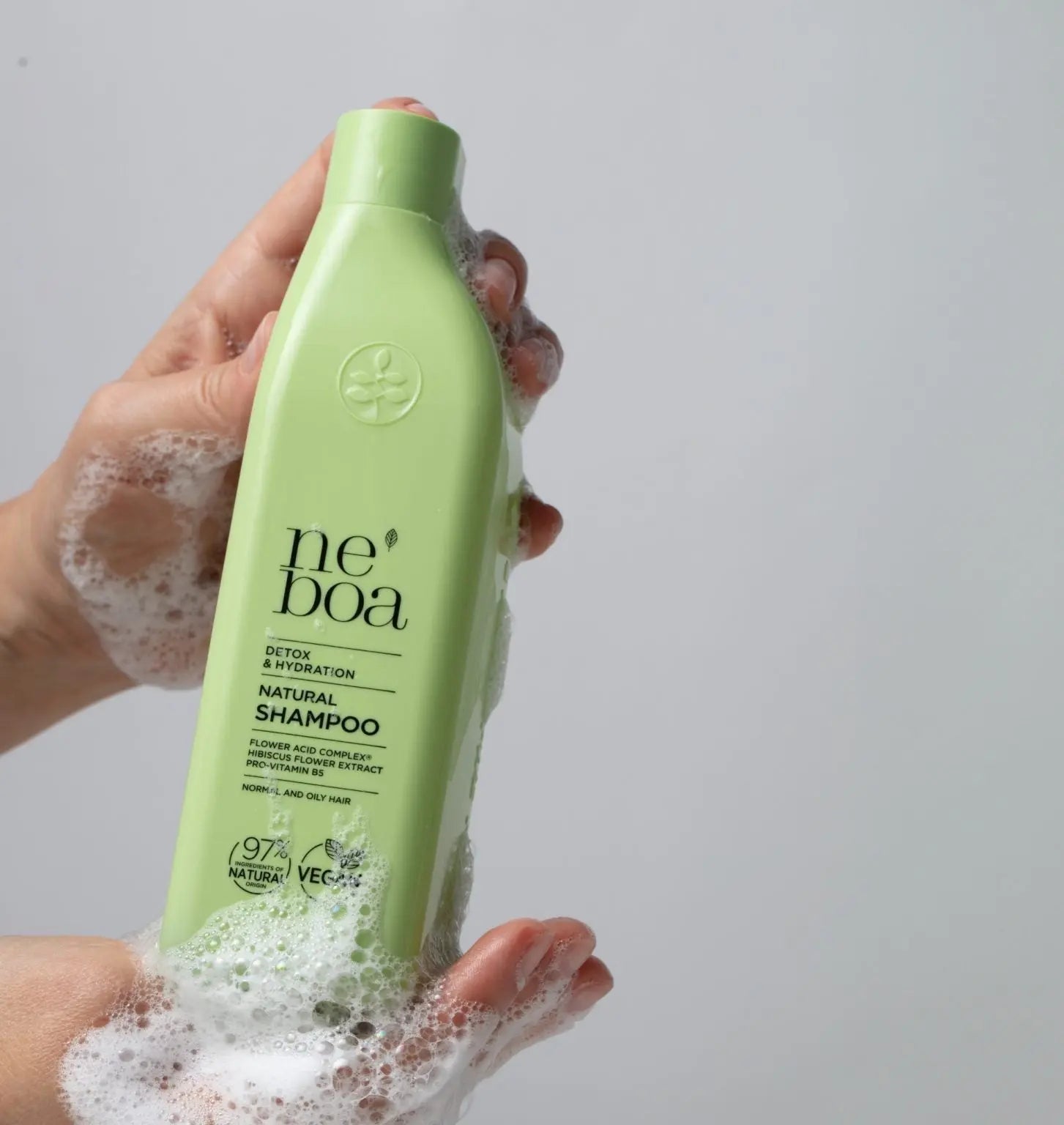 De Neboa Detox & Hydration Shampoo is een verfrissende en hydraterende shampoo speciaal voor oily en normaal haar. Deze shampoo reinigt je hoofdhuid en haar op een milde manier dankzij natuurlijke cleansing substances die niet uitdrogen en niet irriteren. Perfect als je fris haar wilt zonder dat het trekkerig aanvoelt.