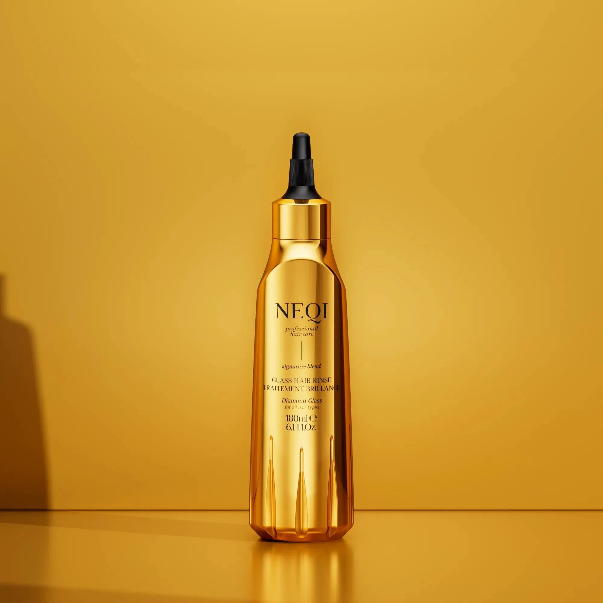 De Neqi Diamond Glass Mirror Rinse is jouw ultieme finishing touch voor dat trendy glass hair effect. Deze lichtgewicht rinse treatment geeft je haar direct een spiegelachtige glans en laat het eruitzien alsof het licht weerkaatst bij elke beweging.