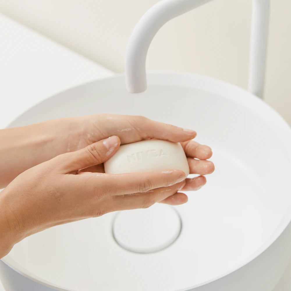 De Nivea Creme Soft Soap Bar reinigt de handen op milde wijze en verzorgt de huid bij elke wasbeurt. De formule schuimt rijkelijk en verwijdert onzuiverheden zonder de huid uit te drogen. Je handen blijven fris, zacht en gehuld in de subtiele geur van Nivea.