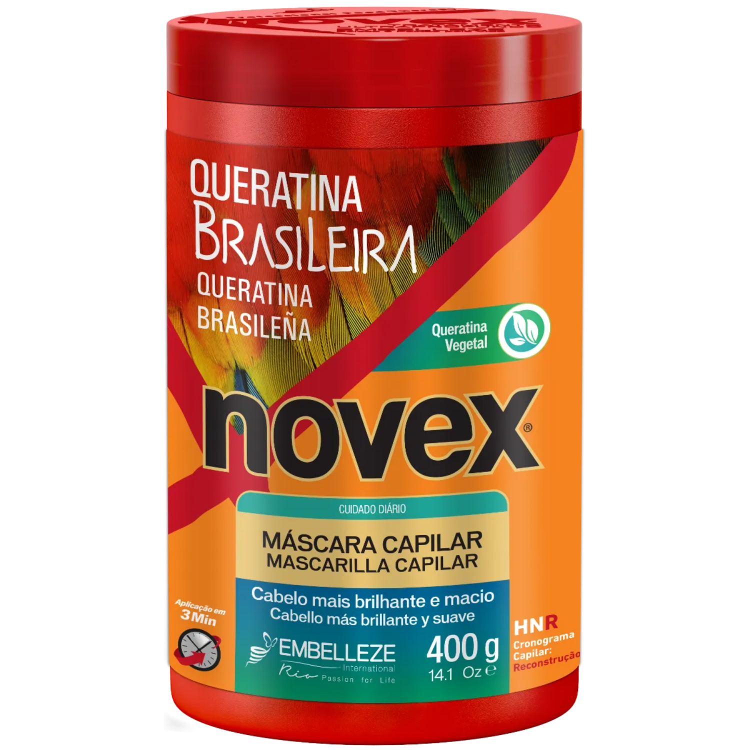 Het Novex Embelleze Brazilian Keratin Hair Mask is een diepe conditioning treatment speciaal ontwikkeld voor droog en beschadigd haar. Dit masker vult essentiële proteïnen aan met gehydrolyseerde keratine, die sneller wordt opgenomen en diep doordringt tot in de haarvezels. Het resultaat? Sterker, gezonder haar met een zachte glans en een gladde finish.