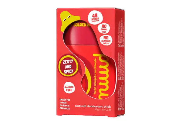 De Nuud Golden Breeze Stick is jouw nieuwe BFF voor natuurlijk frisse oksels, tot wel 6 à 7 weken lang. Deze 100% natuurlijke deodorant bevat een blend van grapefruit, roze peper en gember die je meteen wakker schudt, terwijl magnolia en neroli zorgen voor rust en balans. Amber en patchouli maken het geheel af met een zachte, warme finish.