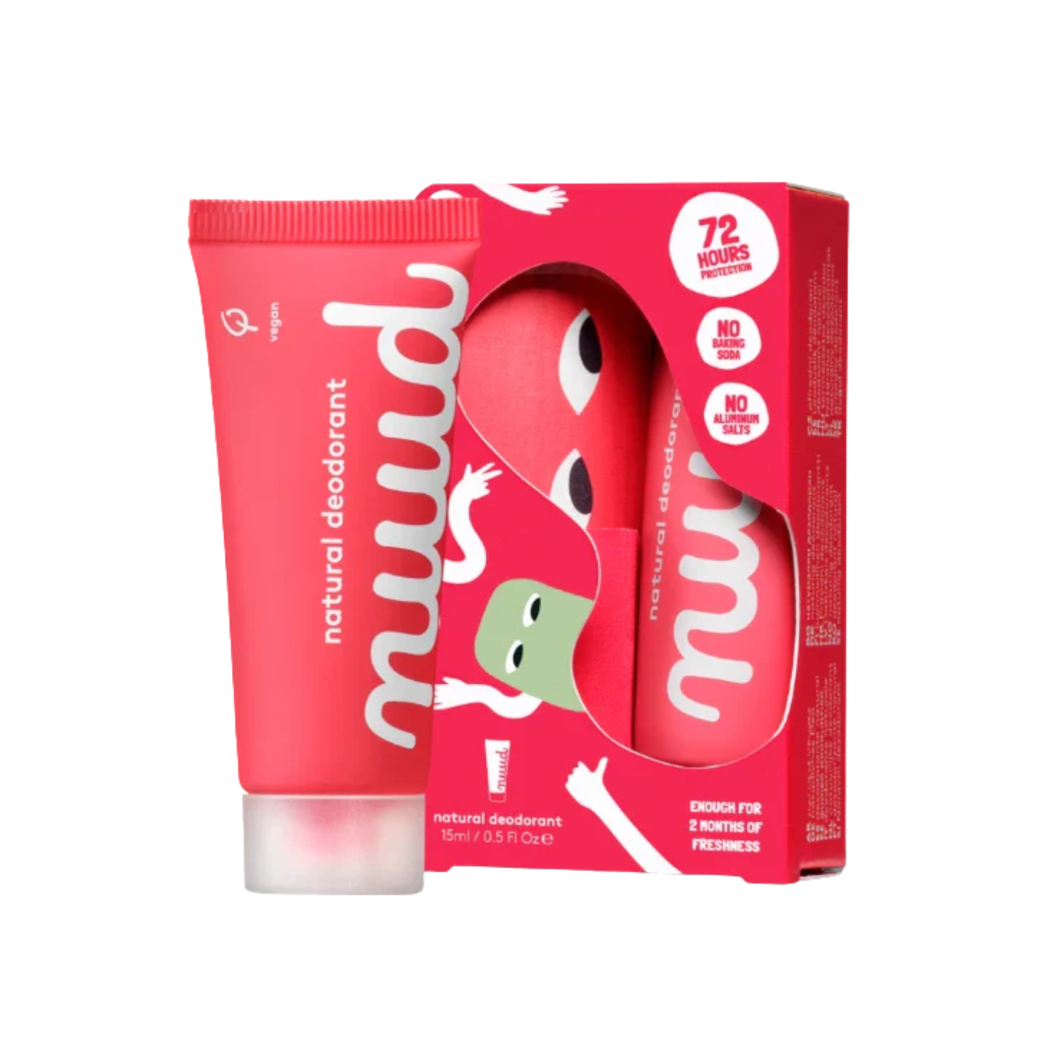 De Nuud Starter Pack Red bevat één tube met 15 ml crème, genoeg voor 7-8 weken natuurlijk frisse oksels. De nieuwe formule is lichter, luchtiger en laat je oksels beter ademen. Deze geurloze crème ruikt toch heerlijk door de combinatie van natuurlijke ingrediënten, zonder toegevoegde parfum.
