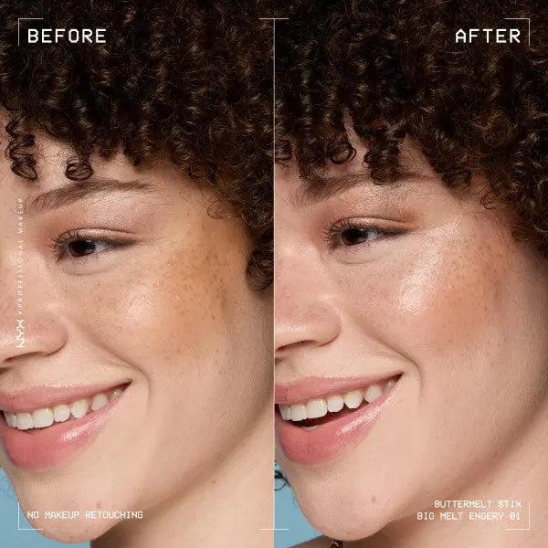 De NYX Professional Makeup Buttermelt Highlighter Stix Big Melt Energy is de ultieme glow boosting highlighter voor iedereen die houdt van een zachte smeltende glans zonder gedoe. De romige botertextuur glijdt moeiteloos over je huid en geeft direct een stralende shine die tot wel acht uur blijft zitten. Dankzij de verzorgende basis met cupuaçu butter en coconut butter voelt de highlighter heerlijk zacht aan en blendt hij naadloos in.