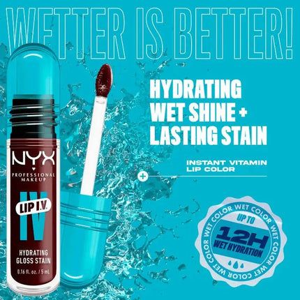 De NYX Professional Make Up Lip IV Hydrating Lip Gloss Water 'Bout Wine? is een 2-in-1 lipgloss en lip stain die zorgt voor ultieme hydratatie én een prachtige wet-shine finish. Dankzij de vitamine-infusie met magnesium, vitamine B12 en hydraterend kokoswater krijgen je lippen niet alleen een intense kleur, maar blijven ze tot wel 12 uur gehydrateerd. Perfect voor een frisse, verzorgde look!