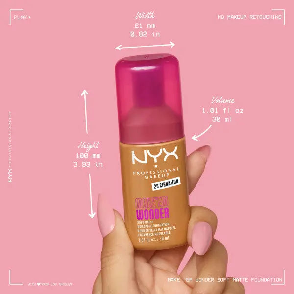 De NYX Professional Makeup Make 'EM Wonder Foundation is jouw geheime wapen voor een huid die zó mooi is dat iedereen zich afvraagt of je überhaupt make-up draagt. Deze lichtgewicht foundation heeft een zachte matte finish die je teint perfect egaliseert zonder dat het er cakey uitziet.