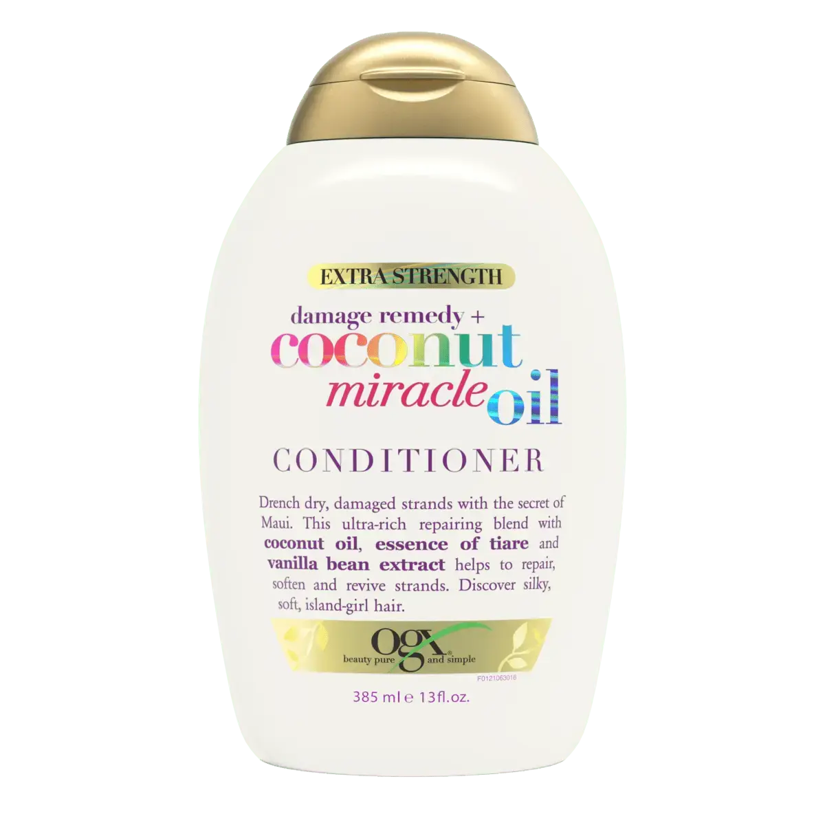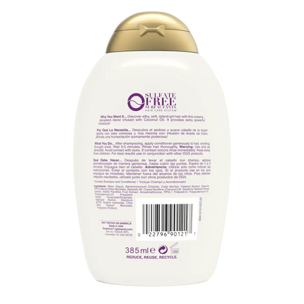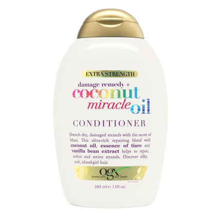 De OGX Extra Strength Damage Remedy + Coconut Miracle Oil Conditioner is een echte redder in nood voor droog en beschadigd haar. Deze krachtige conditioner is verrijkt met kokosolie, tiare bloemextract en vanilleboon om je lokken intens te voeden en te herstellen.