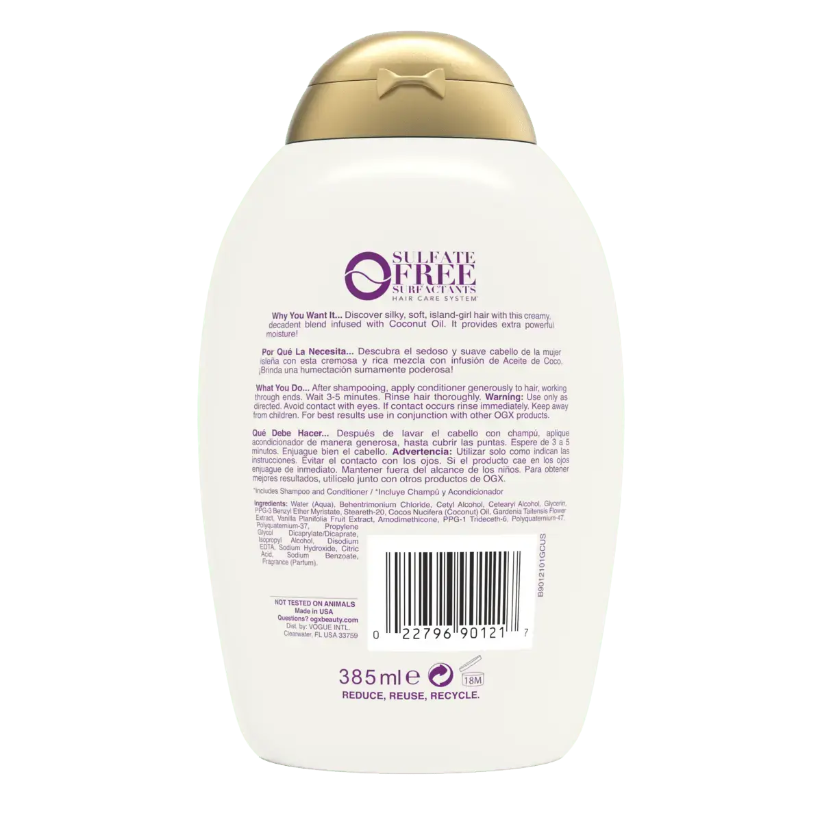 Water (Aqua), Cetearyl Alcohol, Cetyl Alcohol, Behentrimonium Chloride, Glycerin, Ppg-3 Benzyl Ether Myristate, Cocos Nucifera (Coconut) Oil, Gardenia Taitensis Flower Extract, Vanilla Planifolia Fruit Extract, Dimethicone, Polyquaternium-47, Steareth-20, Disodium Edta, Isopropyl Alcohol, Citric Acid, Sodium Hydroxide, Sodium Benzoate, Fragrance (Parfum).