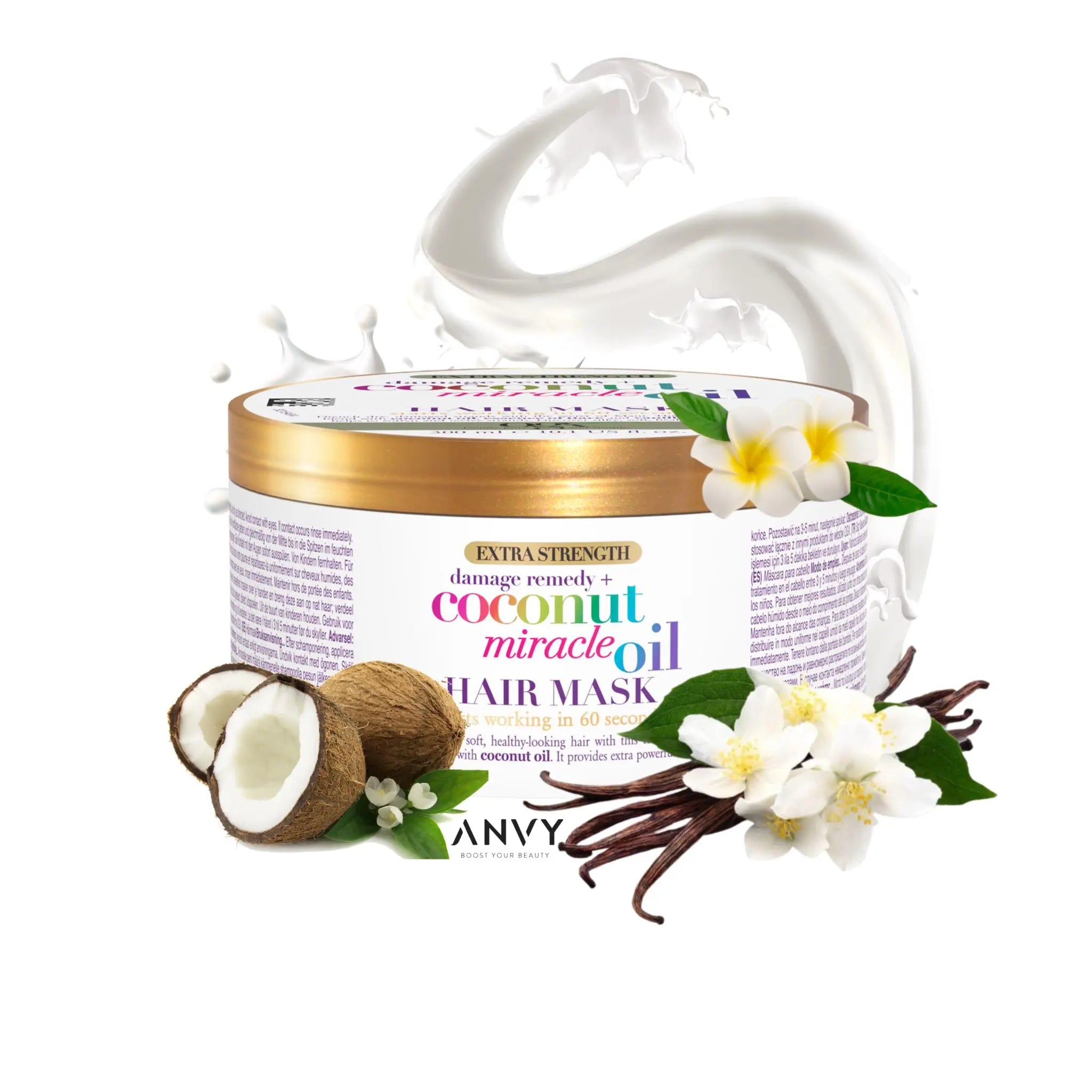 Het OGX Extra Strength Damage Remedy + Coconut Miracle Oil Masker is een intensief herstellend haarmasker dat speciaal is ontwikkeld voor droog, beschadigd en futloos haar.