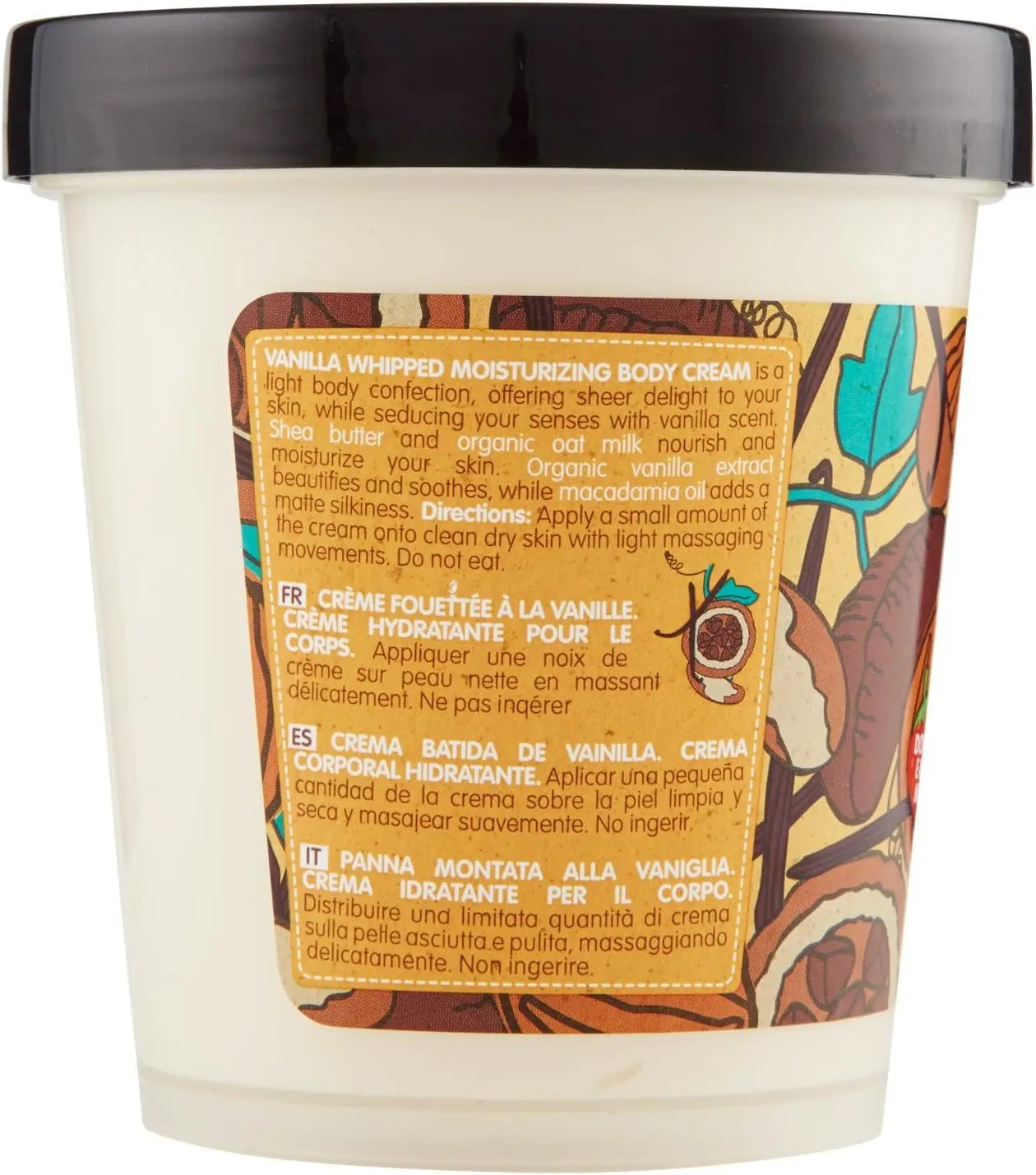 De Organic Shop Body Desserts Vanilla Whipped Cream Moisturizing Body Cream is een luchtige traktatie voor je huid én je zintuigen. Deze fluweelzachte body cream verwent je huid met shea butter en organic oat milk die intens voeden en hydrateren.