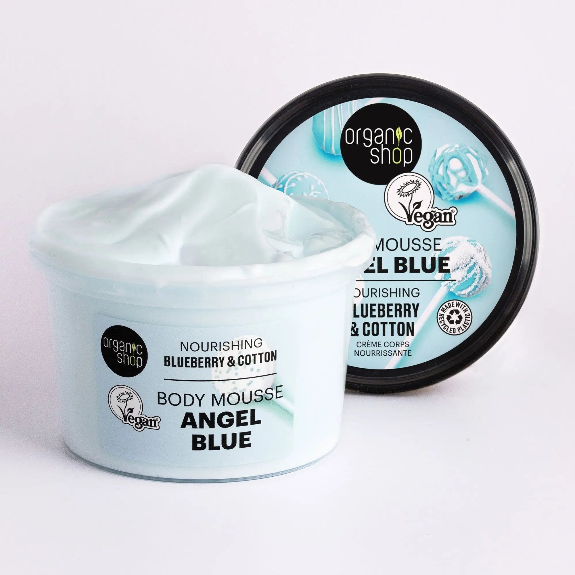 De Organic Shop Body Mousse Angel Blue is de ultieme winterse verwennerij voor je huid én je humeur. Deze zachte, fluffy mousse is verrijkt met blueberry en cotton om je huid intens te voeden en te hydrateren.
