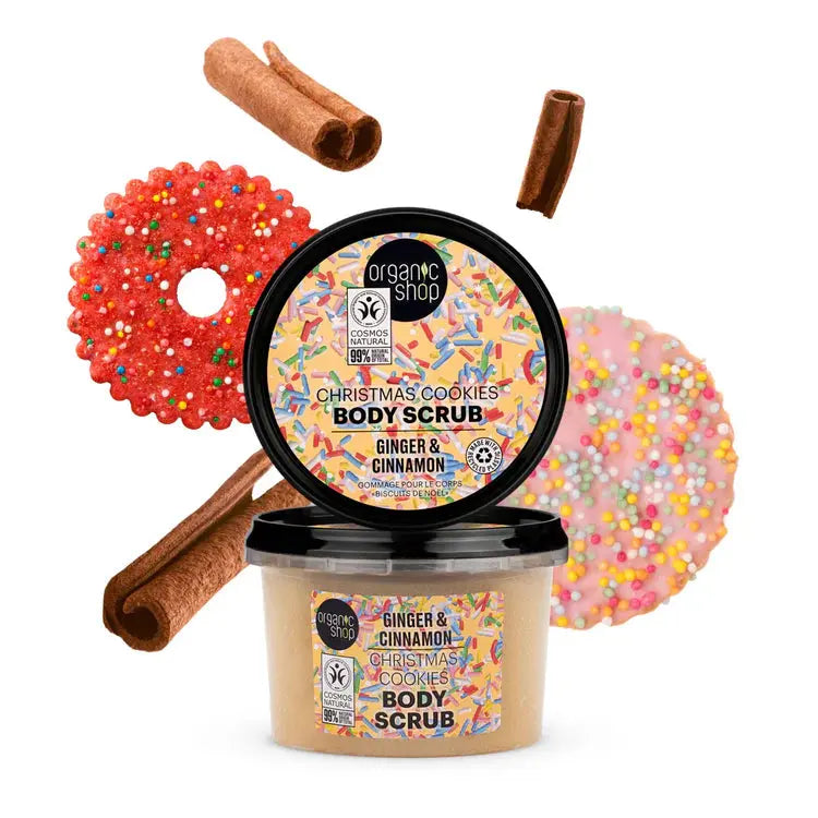 De Organic Shop Body Scrub Christmas Cookies is een heerlijke traktatie voor je huid en dé manier om de feestdagen nog magischer te maken. Deze scrub combineert organic ginger en organic cinnamon extracts om je huid te verzorgen, te versterken en heerlijk soepel te maken.