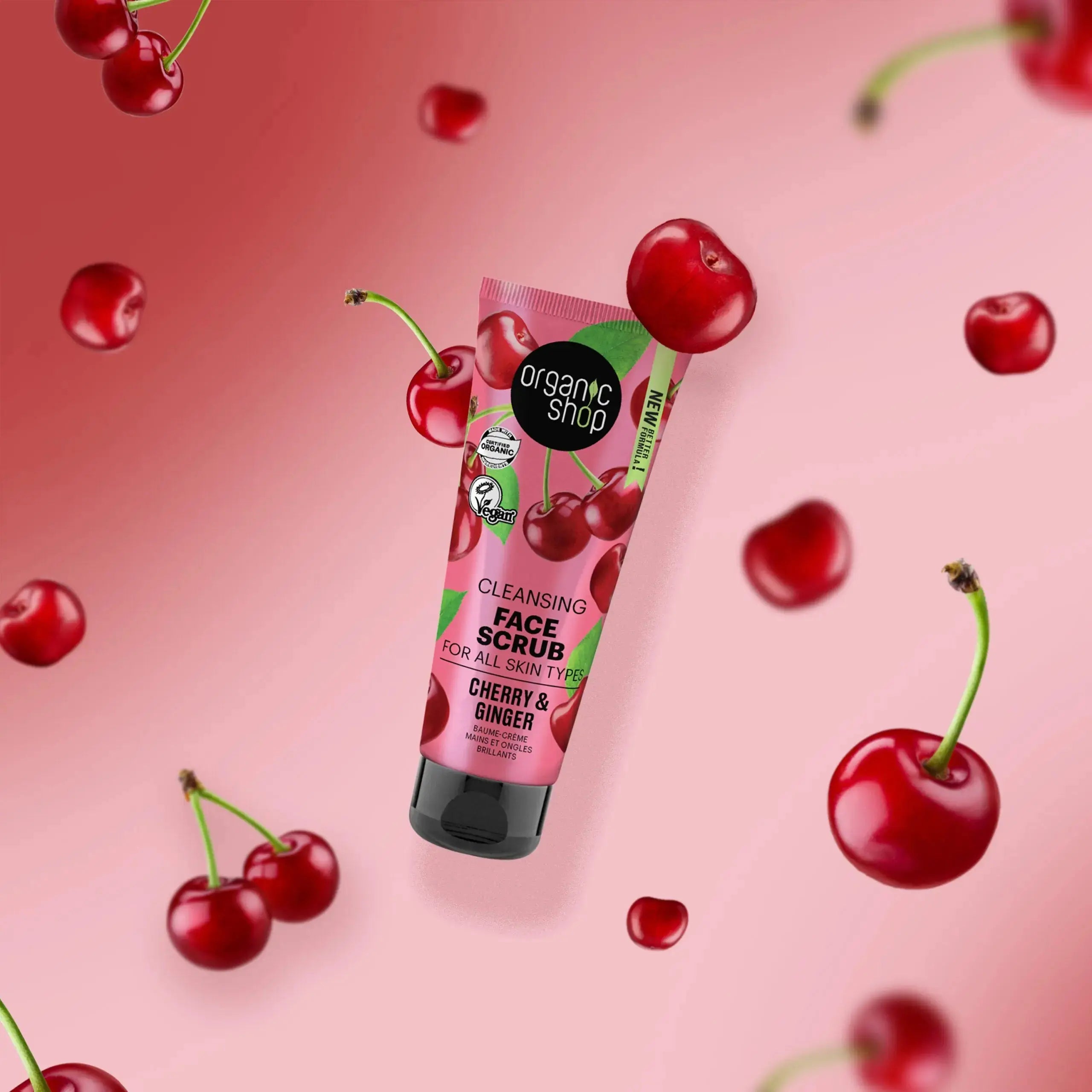 De Organic Shop Cleansing Face Scrub Cherry & Ginger is dé must-have scrub voor een zachte en gerevitaliseerde huid. Deze milde scrub reinigt en exfolieert je huid, waardoor dode huidcellen worden verwijderd en je huidtextuur zichtbaar verbetert. Verrijkt met biologische gember en kersenextract, hydrateert en voedt deze scrub je huid voor een zijdezachte finish en een natuurlijke glow.