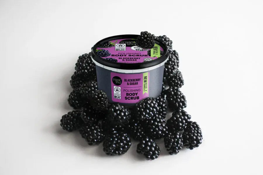 De Organic Shop Polishing Body Scrub Blackberry is een zoete traktatie voor je huid. Deze balsemachtige scrub combineert voedende biologische bramenextracten met fijne suikerdeeltjes die dode huidcellen verwijderen en je huid zijdezacht maken. Ideaal voor wie op zoek is naar een zachte, maar effectieve exfoliatie mét een heerlijke geurervaring.