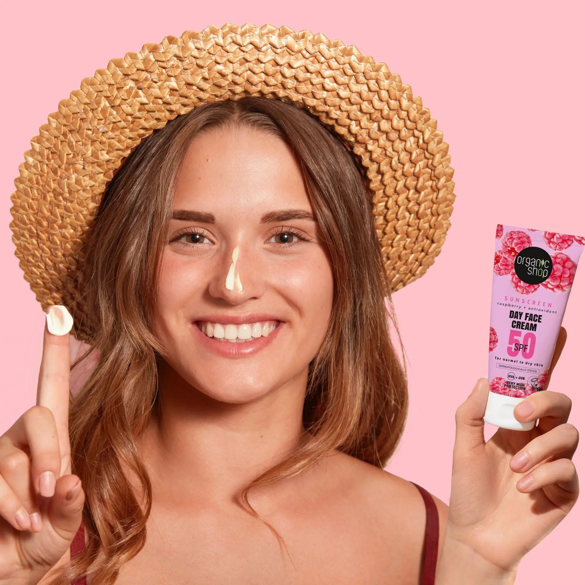 De Organic Shop Sunscreen SPF 50 Day Face Cream Normal To Dry Skin is jouw dagelijkse bescherming tegen de zon én vroegtijdige huidveroudering in één handige tube. Speciaal ontwikkeld voor de normale tot droge huid, biedt deze zonnebrandcrème zeer hoge UVA- en UVB-bescherming.