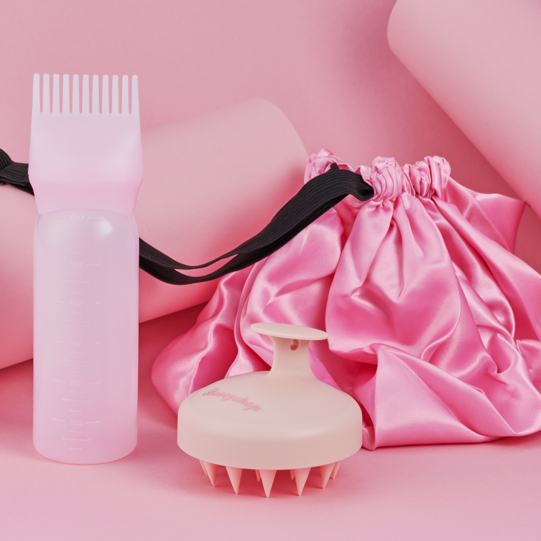 Of je nu castorolie, rijstwater of een ander haarmasker gebruikt: met deze set breng je het makkelijk aan met de Hair Oil Applicator, masseer je het zachtjes in met de Scalp Massaging Brush en bescherm je je haar met het zijdezachte Satijnen Slaapkapje. Deze overnight routine zorgt voor gezonder, sterker en glanzender haar terwijl jij lekker ligt te slapen.