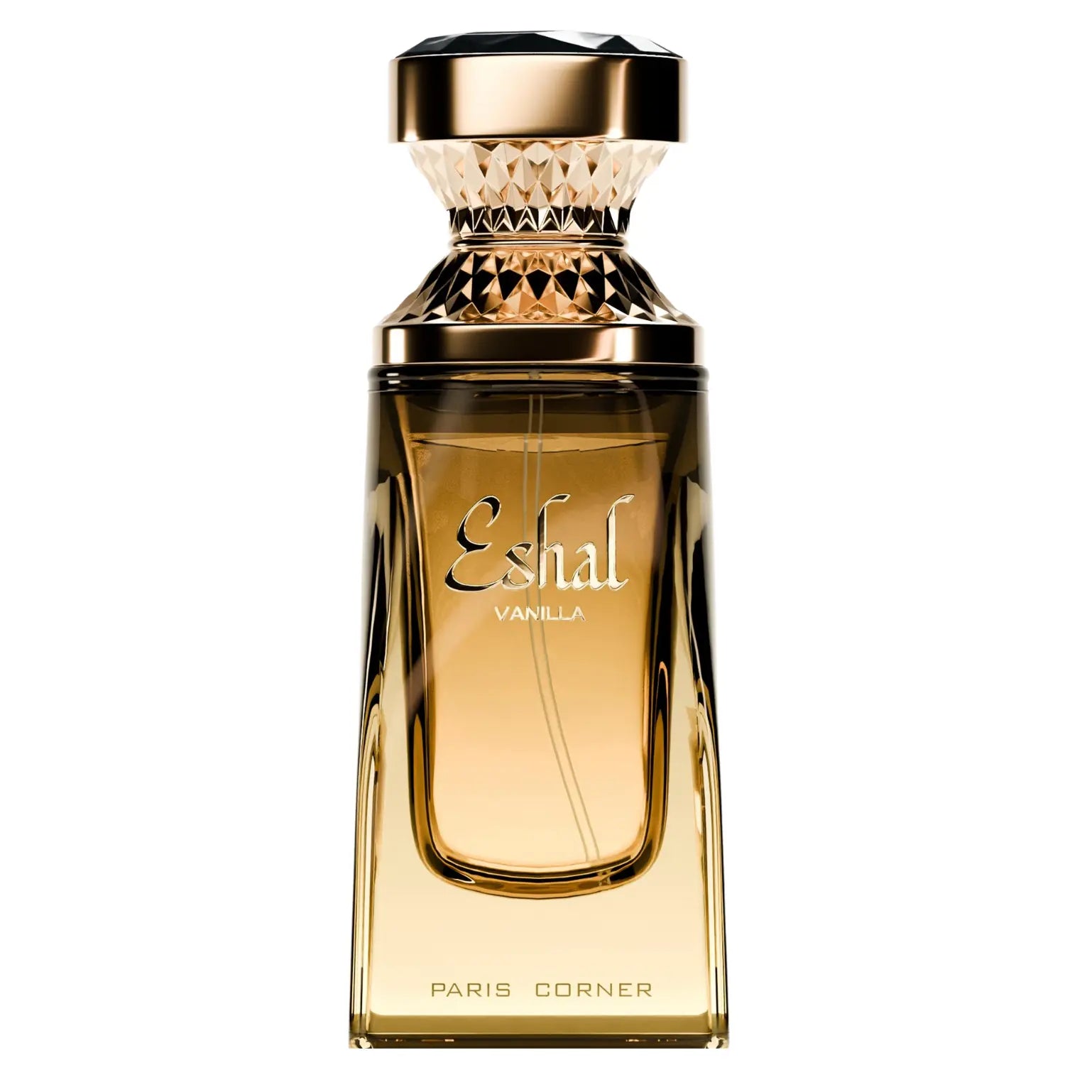 Paris Corner Eshal Vanilla is het perfecte parfum voor vanilleliefhebbers die houden van warmte, elegantie en een vleugje mysterie. Deze betoverende geur opent met een zachte zoetheid, waarna rijke vanilletonen zich vermengen met warme amber en verfijnde houtnoten. Het resultaat? Een sensuele, omhullende geur die comfort én klasse uitstraalt.
