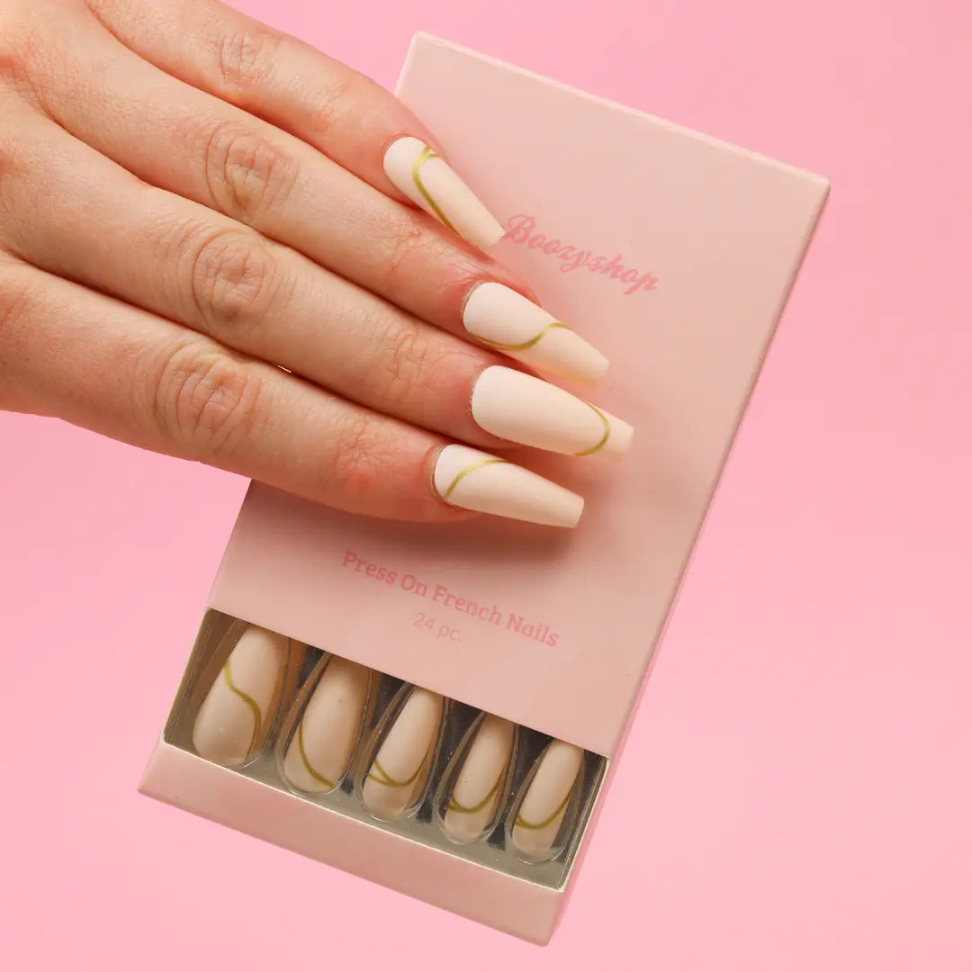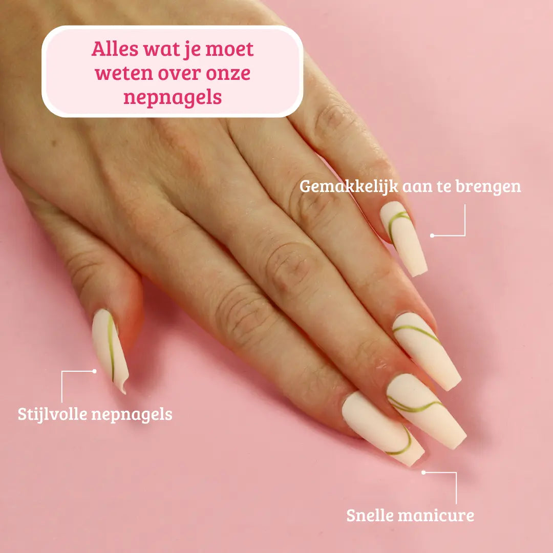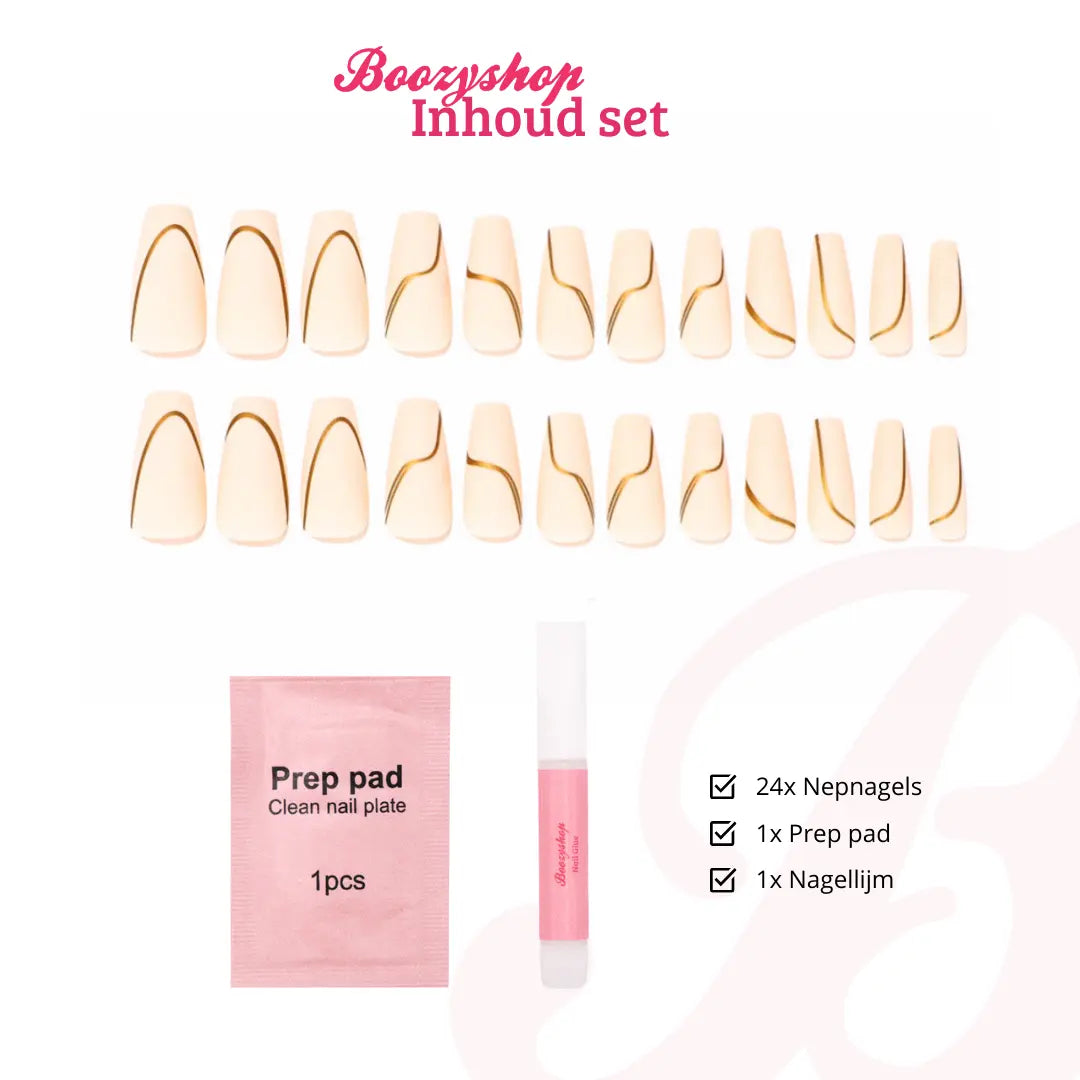 - Stijlvolle nepnagels voorzien van een subtiel gouden detail