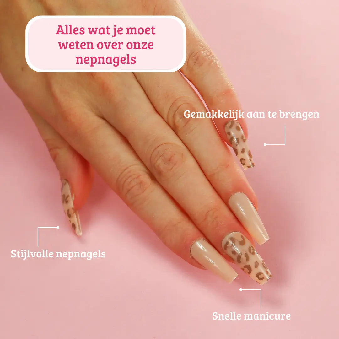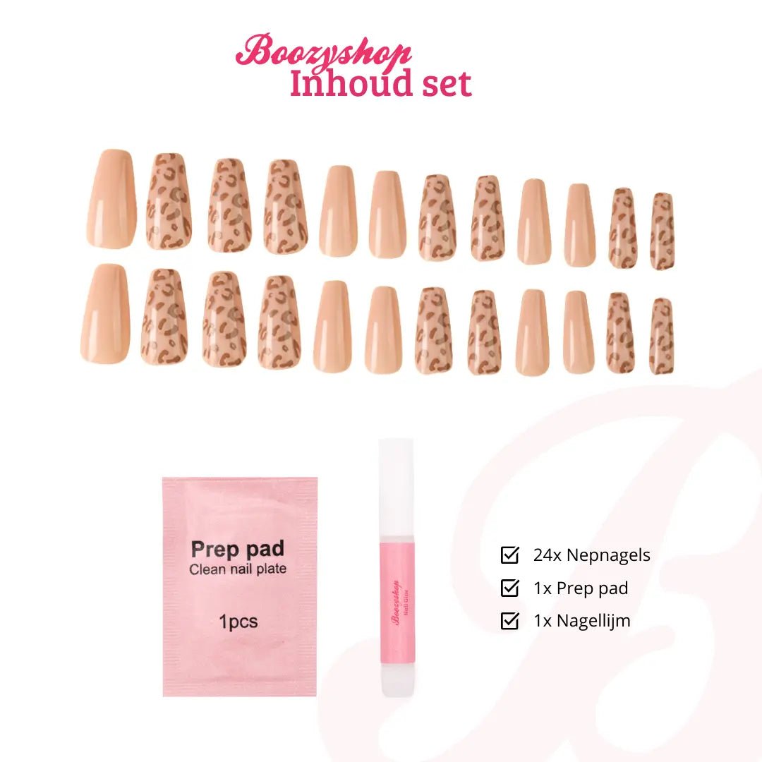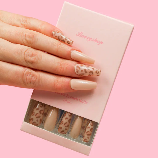 De Boozyshop Press On French Nails Panther zijn jouw go-to voor fierce nagels in no-time! Geen tijd (of zin) om uren in de nagelsalon te zitten? Geen stress babe, met deze stijlvolle press ons heb je binnen een paar minuten een salonwaardige manicure. En dan hebben we het nog niet eens gehad over het te gekke panterdesign!