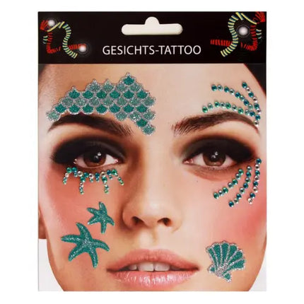 Met de PXP Professional Colours Face Tattoo Sticker Mermaid ben jij helemaal ready voor elk feestje. Een super leuke must-have voor carnaval bijvoorbeeld! Deze zelfklevende stickers zijn geschikt voor het gezicht door de speciale lijm maar je kunt ze natuurlijk ook op je handen of armen plakken. Bovendien zijn deze stickers herbruikbaar, breng simpelweg een beetje wimperlijm aan en plak ze keer op keer opnieuw op als ze niet meer goed plakken.