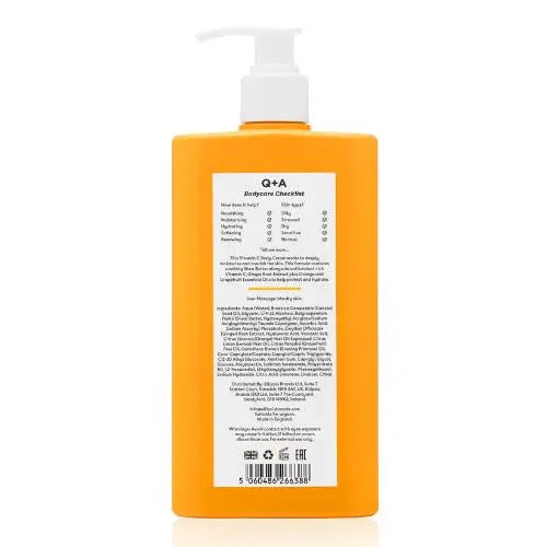 Bovendien heeft deze body cream een heerlijke geur, een verfrissende mix van Orange Zest en Grapefruit, met een vleugje zoete sinaasappel en citroen. Dus, als je op zoek bent naar een crème die niet alleen hydrateert maar ook een heerlijke geur achterlaat, dan is de Q+A Vitamin C Body Cream jouw nieuwe beste vriend.