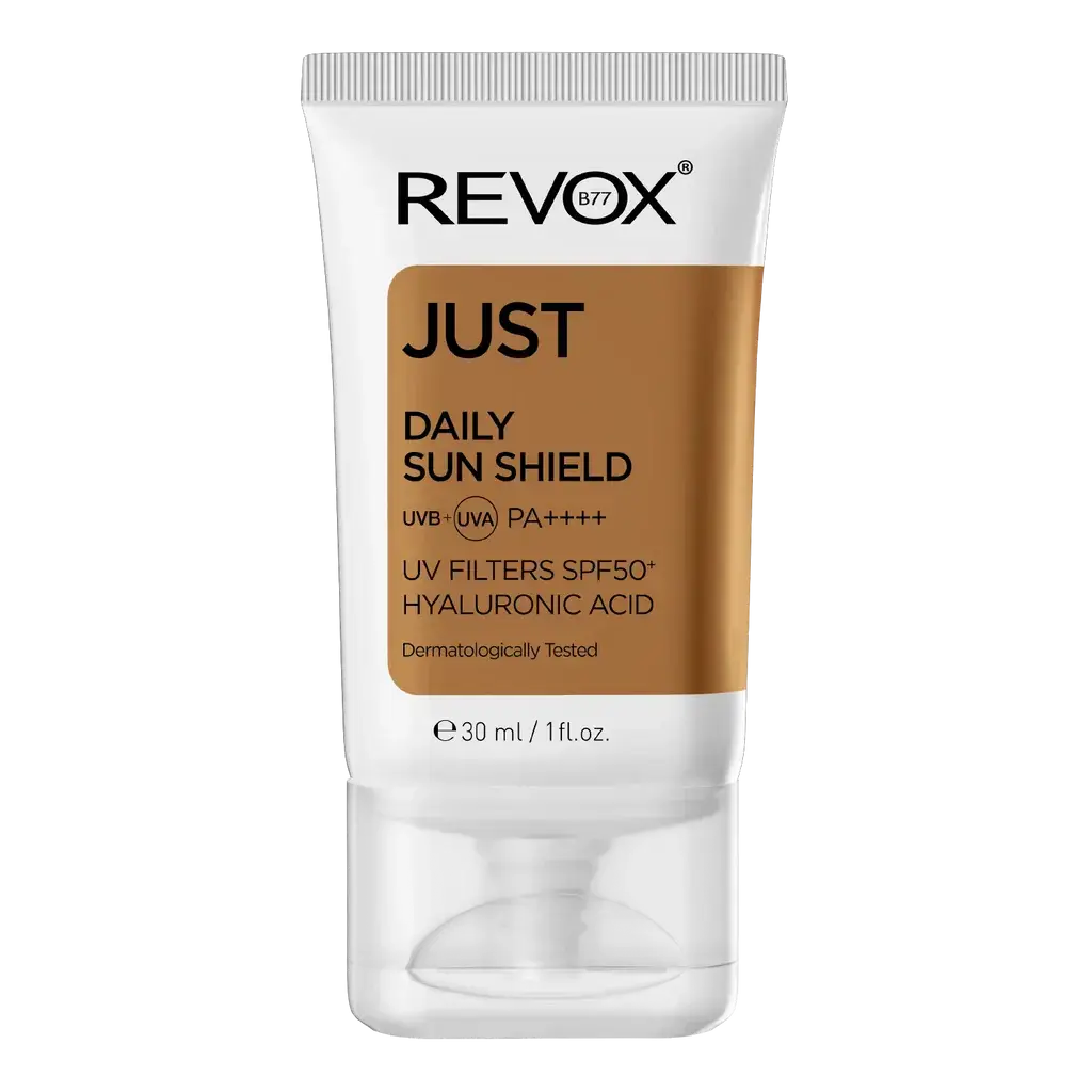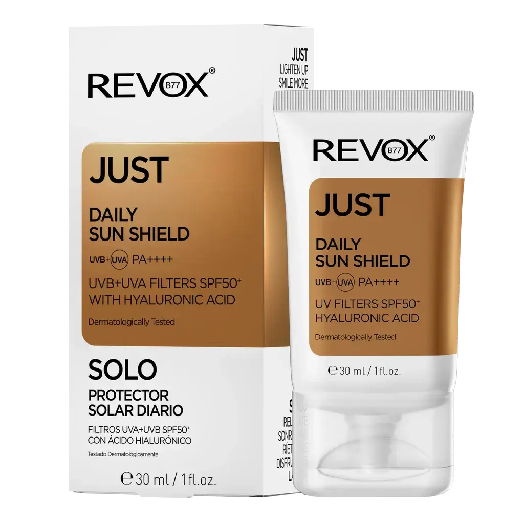 De Revox Just Daily Sun Shield SPF 50+ with Hyaluronic Acid is jouw dagelijkse zonbescherming voor gezicht en hals! Met zijn hoge SPF 50+ beschermt deze lichtgewicht crème je huid effectief tegen zowel verouderende UVA-stralen als brandende UVB-stralen. Tegelijkertijd hydrateert hij diep dankzij hyaluronzuur en glycerine, en zorgt hij voor een zijdezachte, niet-vette finish.