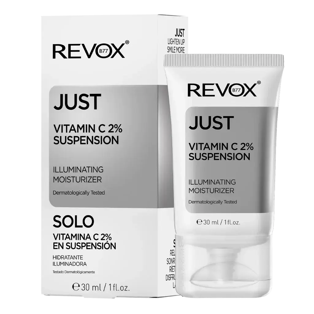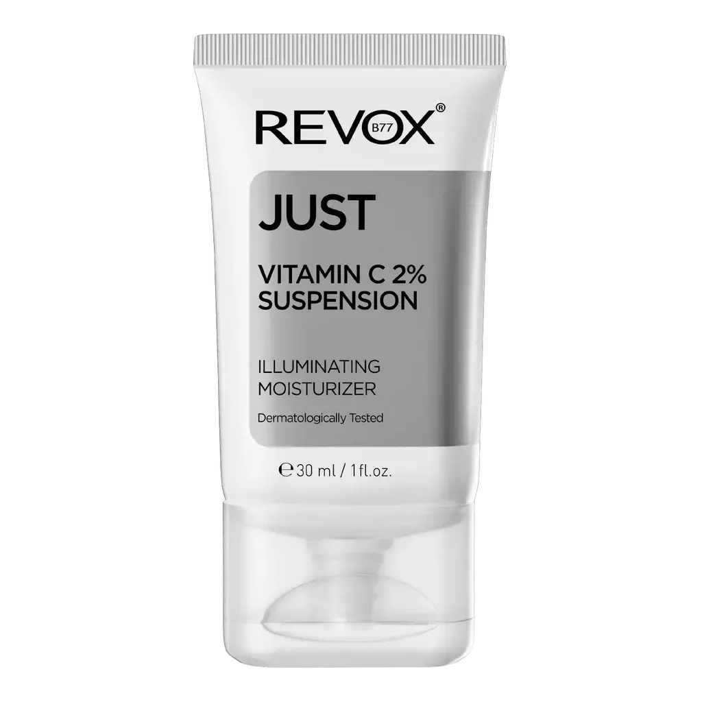 De Revox Just Vitamin C 2% Suspension Illuminating Moisturizer is de perfecte moisturizer om vermoeide, doffe huid te laten stralen en intens te hydrateren. Deze verhelderende crème combineert vitamine C met hydraterende ingrediënten zoals glycerine en verzachtende allantoïne, die samen zorgen voor een gezonde, egale teint.